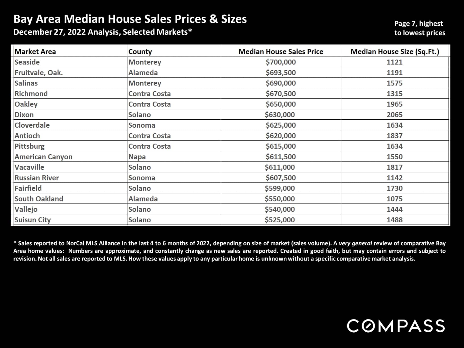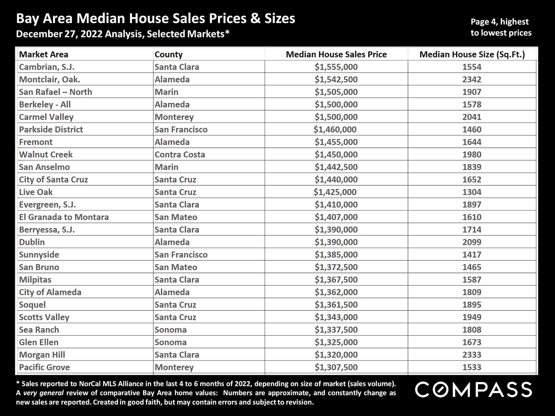 Bay Area Comparative Home Prices - JANUARY 2023