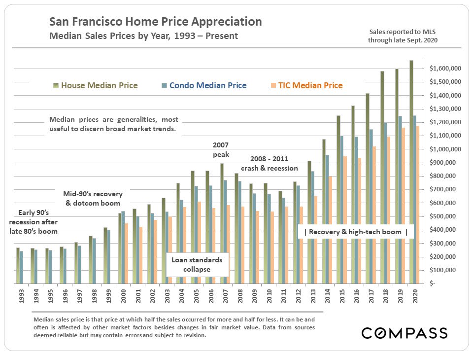 Long-Term Trends in Median Sales Prices through YTD 2020