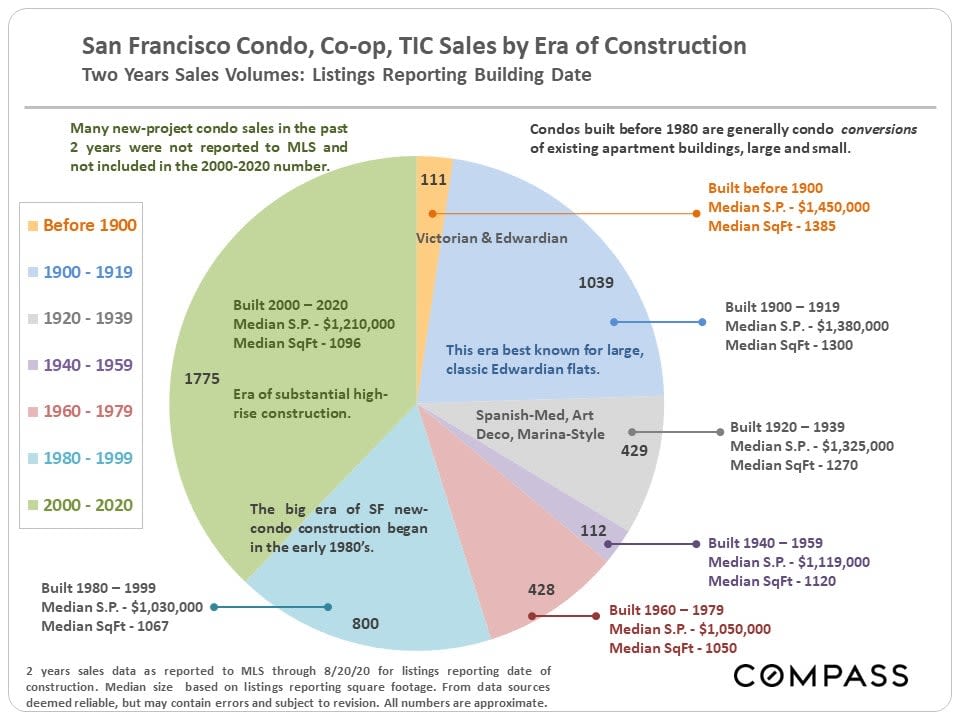 In last month's report, we looked at era of construction for the city's houses. The chart below does the same for the SF condo, co-op and TIC market.