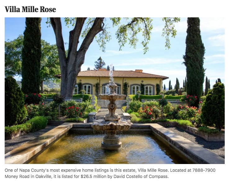 read moreOne of Napa County's most expensive home listings is this estate, Villa Mille Rose. Located at 7888-7900 Money Road in Oakville, it was listed for $26.5 million by David Co...