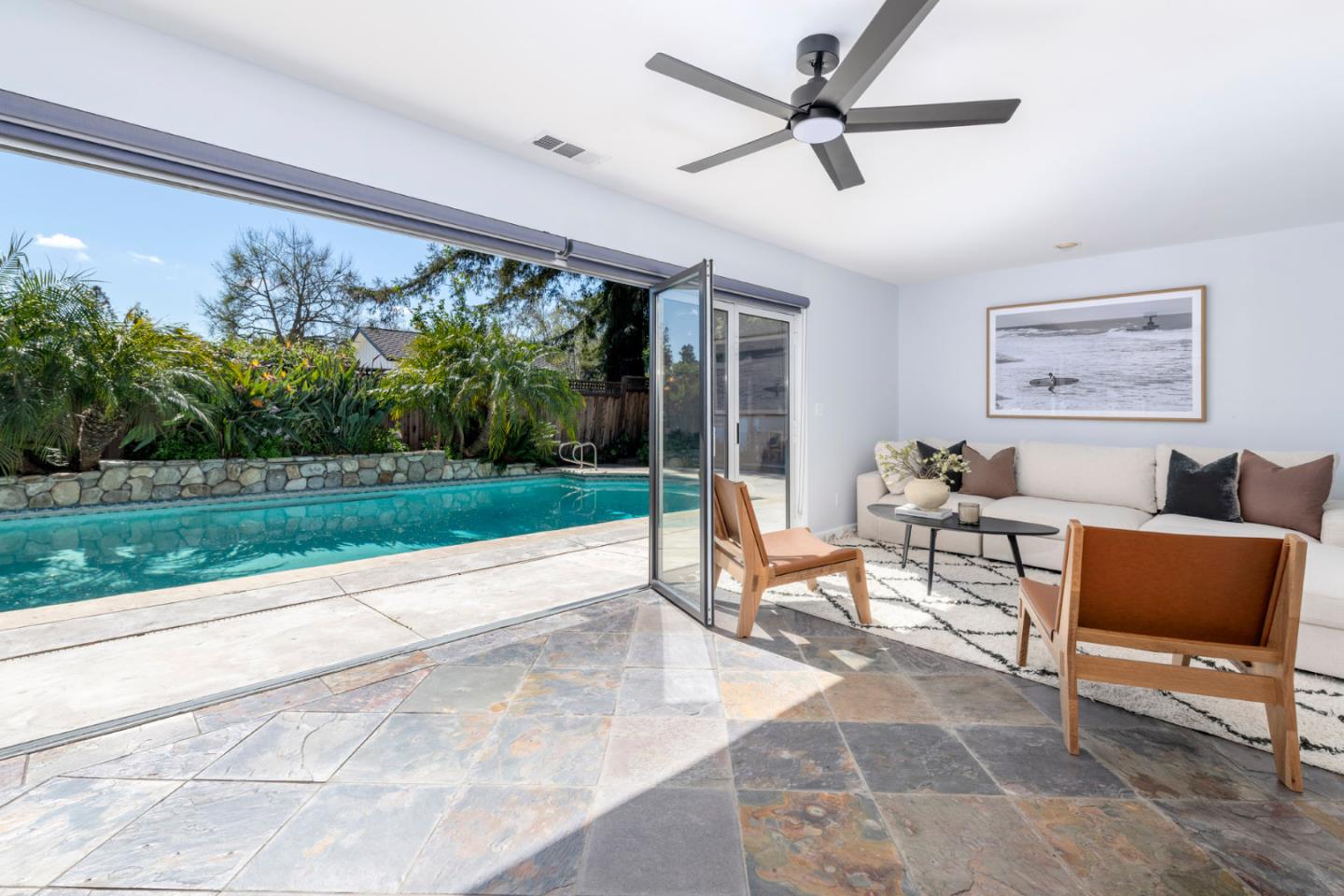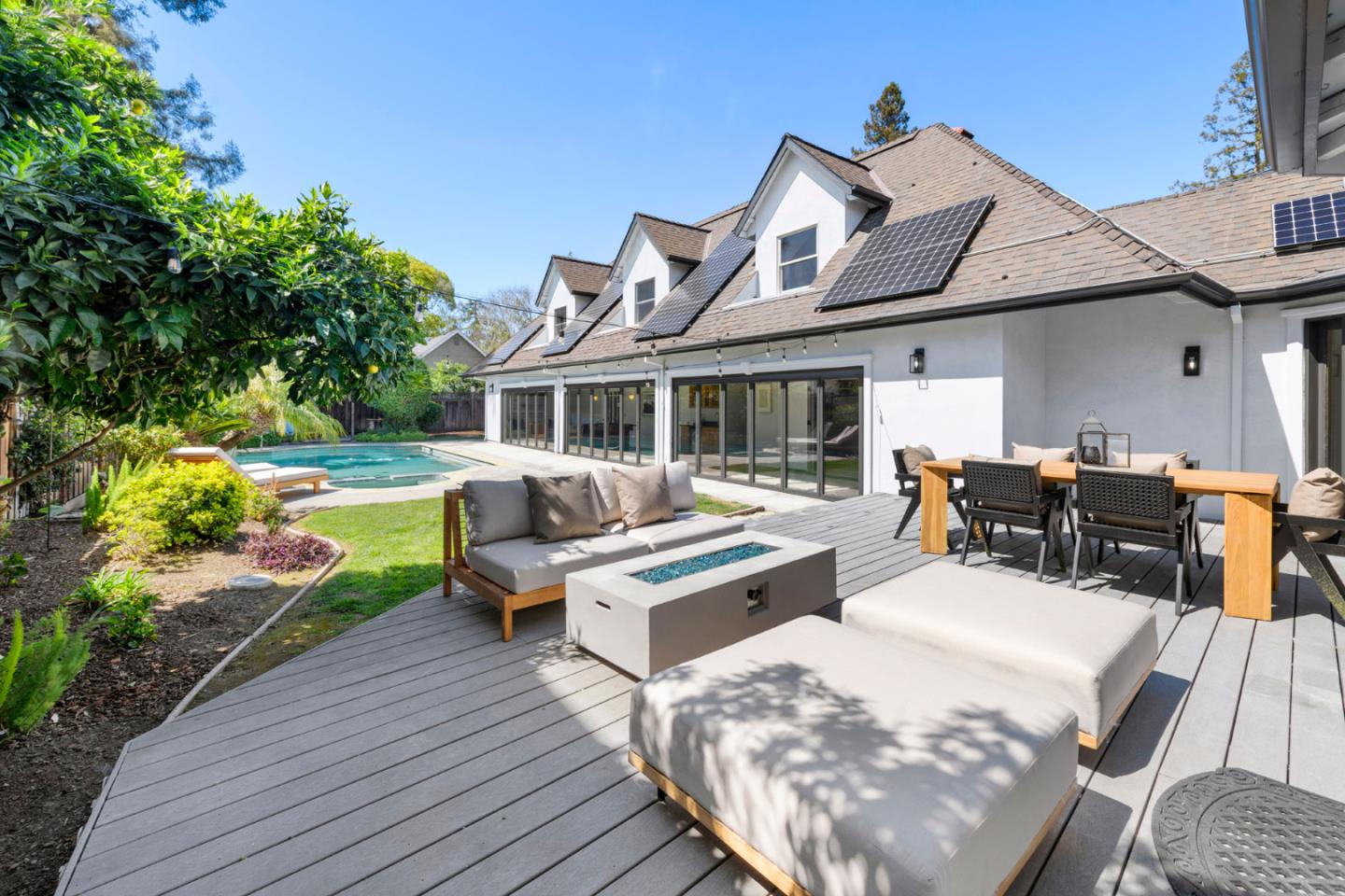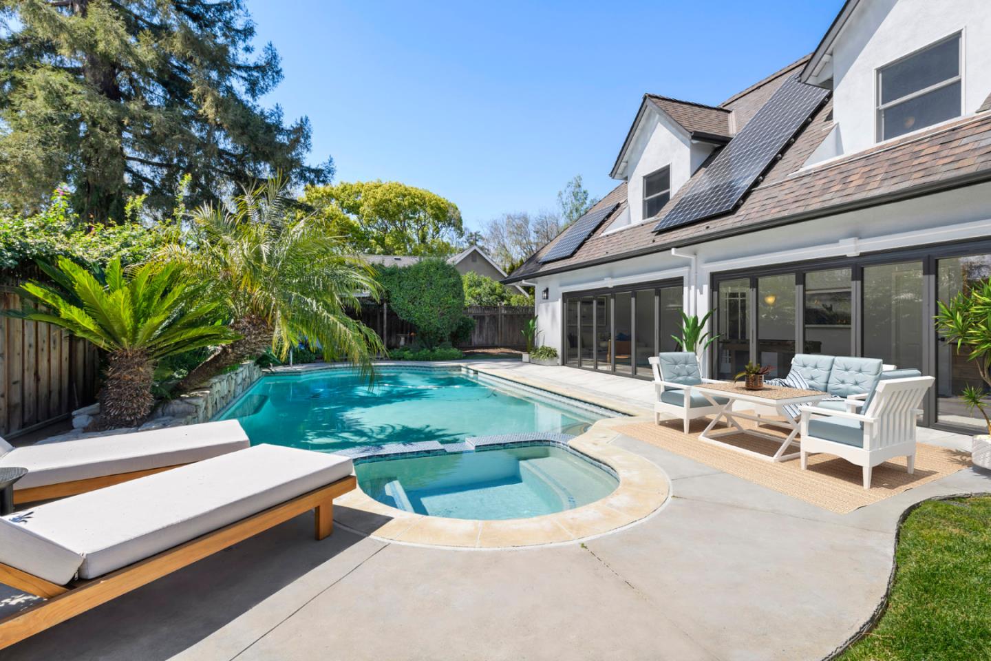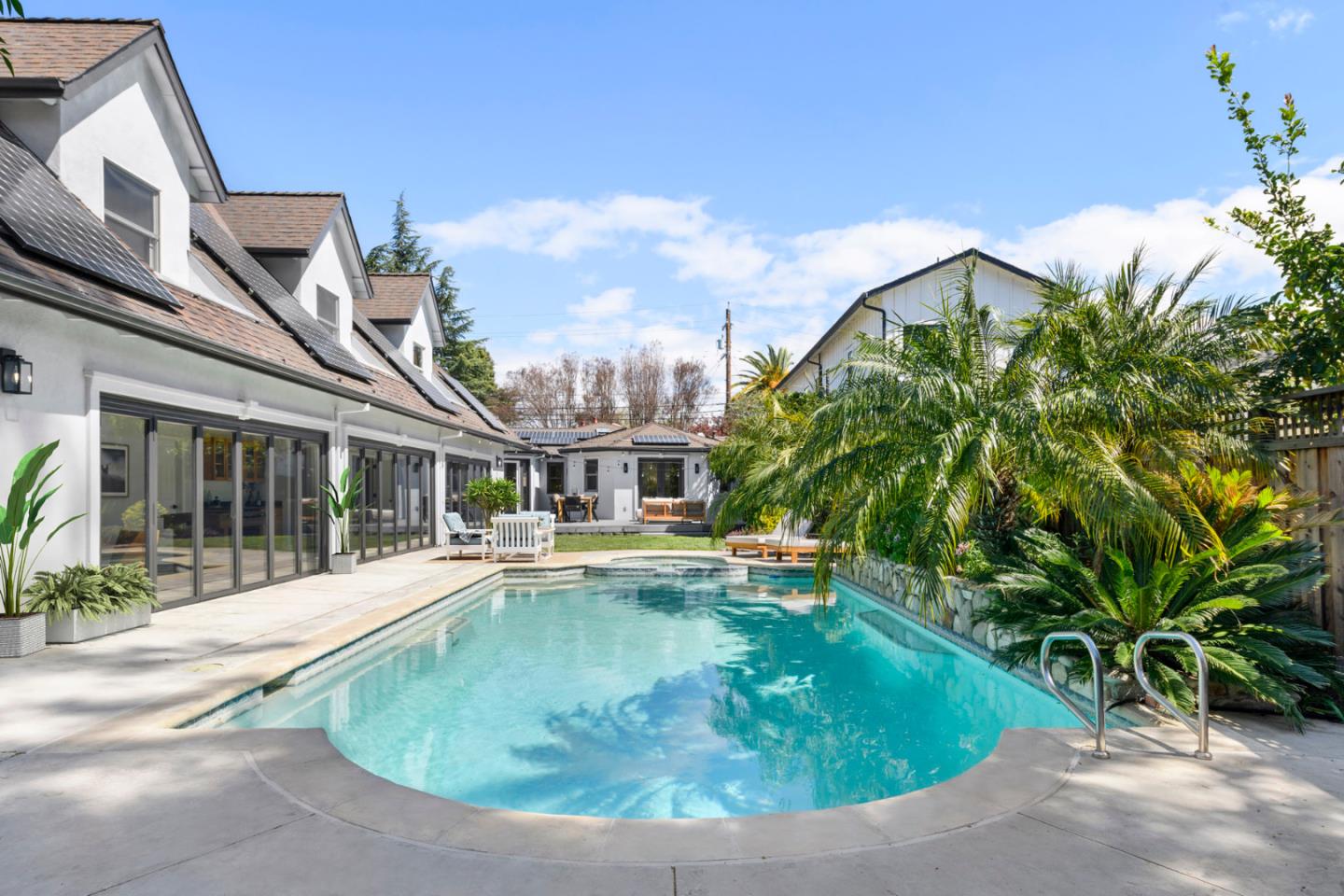 Welcome to 1279 Curtiss Avenue, a stunning Midcentury Modern residence in the highly sought-after Willow Glen area of San Jose. Originally built in 1947 and elegantly renovated in 2025, this home offers a generous 4,100 sq ft of living space on a substantial 10,560 sq ft lot. Boasting 6 bedrooms and 3.5 baths, this residence is designed to accommodate diverse lifestyles. The open floor plan is awash with natural light, enhanced by beautiful hardwood and stone flooring. Relax in the living room by the cozy fireplace or dine in style in the formal dining area. The beautifully appointed chefs kitchen features quartz countertops, a Wolf stove, and stainless steel appliances. the primary suite offers a private retreat with a deck overlooking the lush backyard. Relish the ultimate indoor/outdoor lifestyle with floor-to-ceiling glass doors that open to a private backyard oasis, showcasing a swimming pool, spa, and Tiki Hut bar with BBQ. The garden is perfect for entertaining, complete with a gas fire pit and vibrant fruit trees. Additional features include a 2 car garage, solar panels, dual-zone air conditioning and a convenient laundry room. Enjoy nearby upscale dining and retail stores, plus easy access to the 280 &101 freeways. Discover comfort and style in this neighborhood gem.