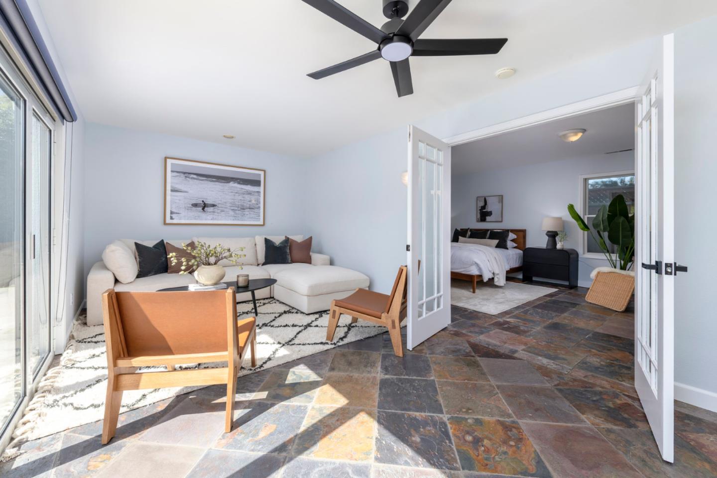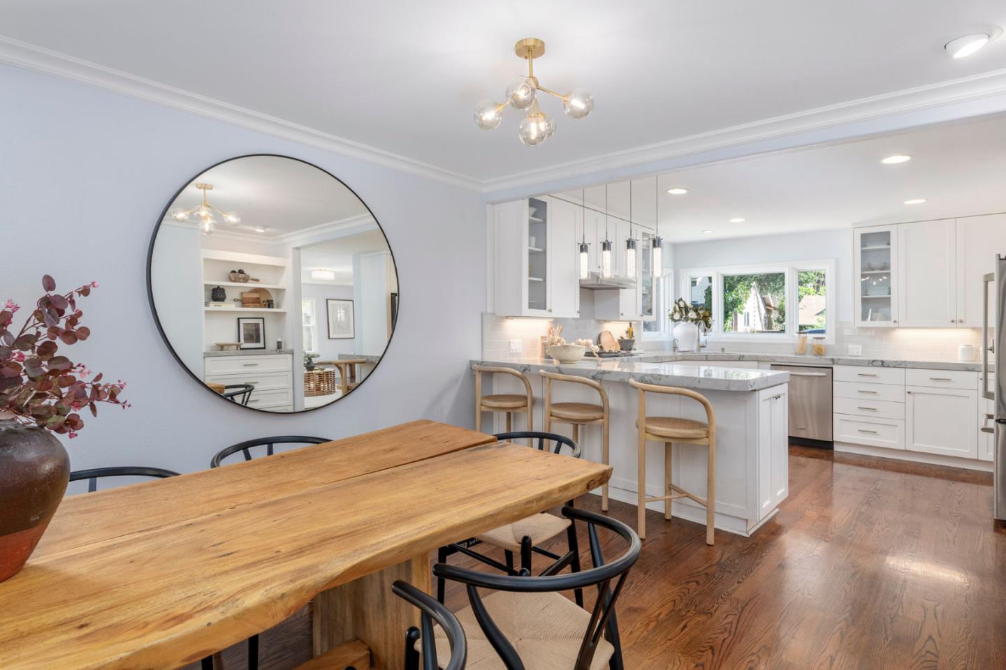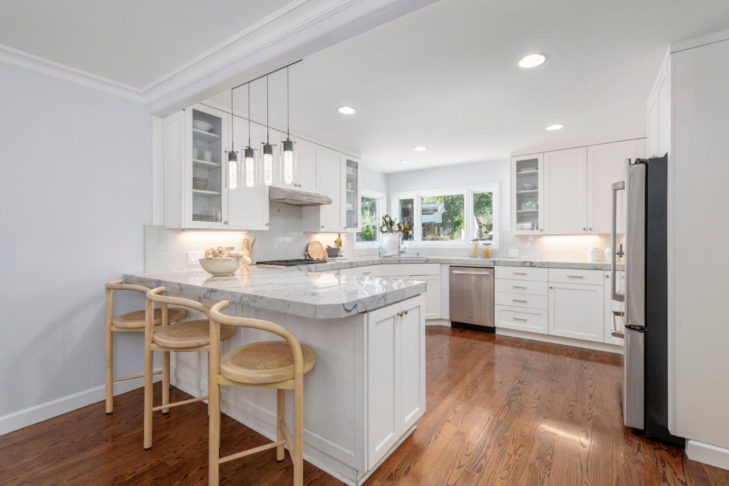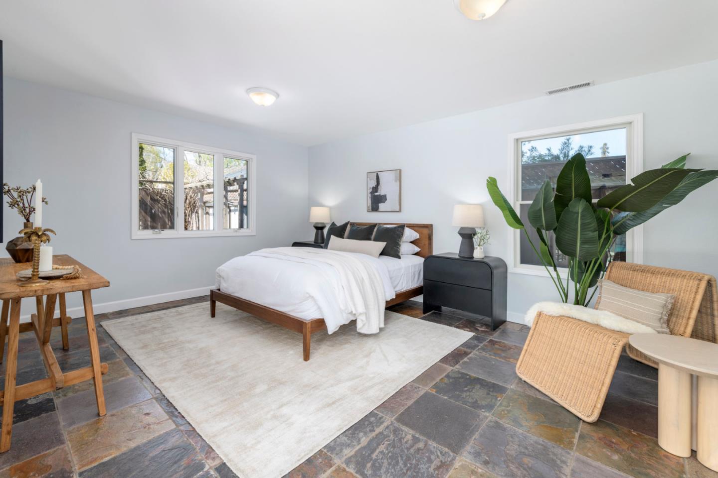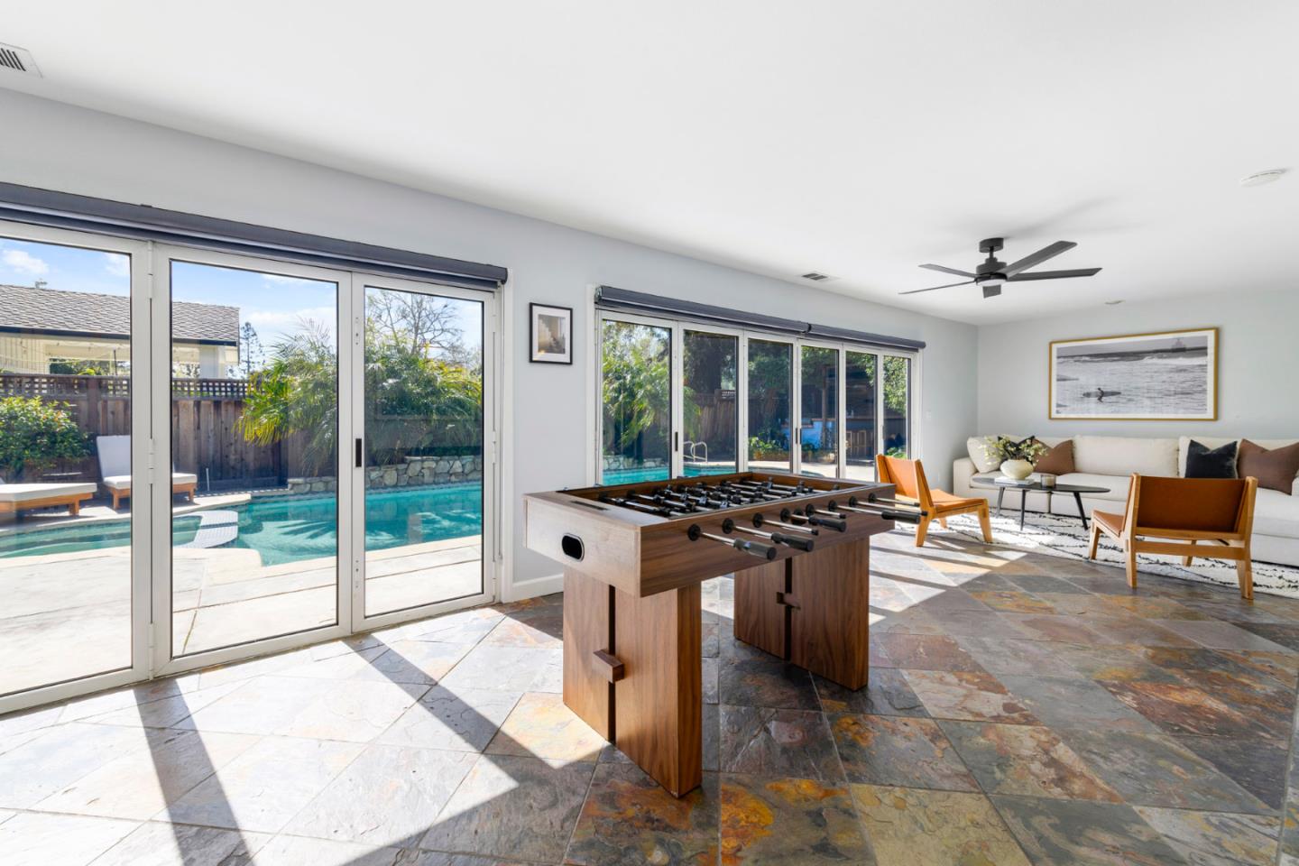 Welcome to 1279 Curtiss Avenue, a stunning Midcentury Modern residence in the highly sought-after Willow Glen area of San Jose. Originally built in 1947 and elegantly renovated in 2025, this home offers a generous 4,100 sq ft of living space on a substantial 10,560 sq ft lot. Boasting 6 bedrooms and 3.5 baths, this residence is designed to accommodate diverse lifestyles. The open floor plan is awash with natural light, enhanced by beautiful hardwood and stone flooring. Relax in the living room by the cozy fireplace or dine in style in the formal dining area. The beautifully appointed chefs kitchen features quartz countertops, a Wolf stove, and stainless steel appliances. the primary suite offers a private retreat with a deck overlooking the lush backyard. Relish the ultimate indoor/outdoor lifestyle with floor-to-ceiling glass doors that open to a private backyard oasis, showcasing a swimming pool, spa, and Tiki Hut bar with BBQ. The garden is perfect for entertaining, complete with a gas fire pit and vibrant fruit trees. Additional features include a 2 car garage, solar panels, dual-zone air conditioning and a convenient laundry room. Enjoy nearby upscale dining and retail stores, plus easy access to the 280 &101 freeways. Discover comfort and style in this neighborhood gem.