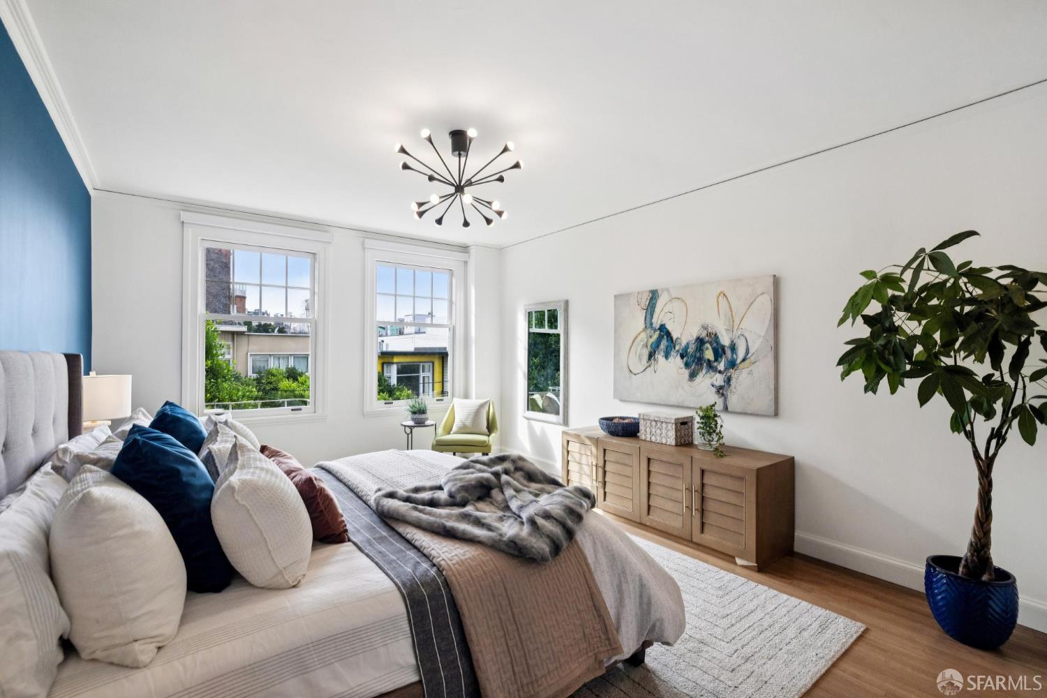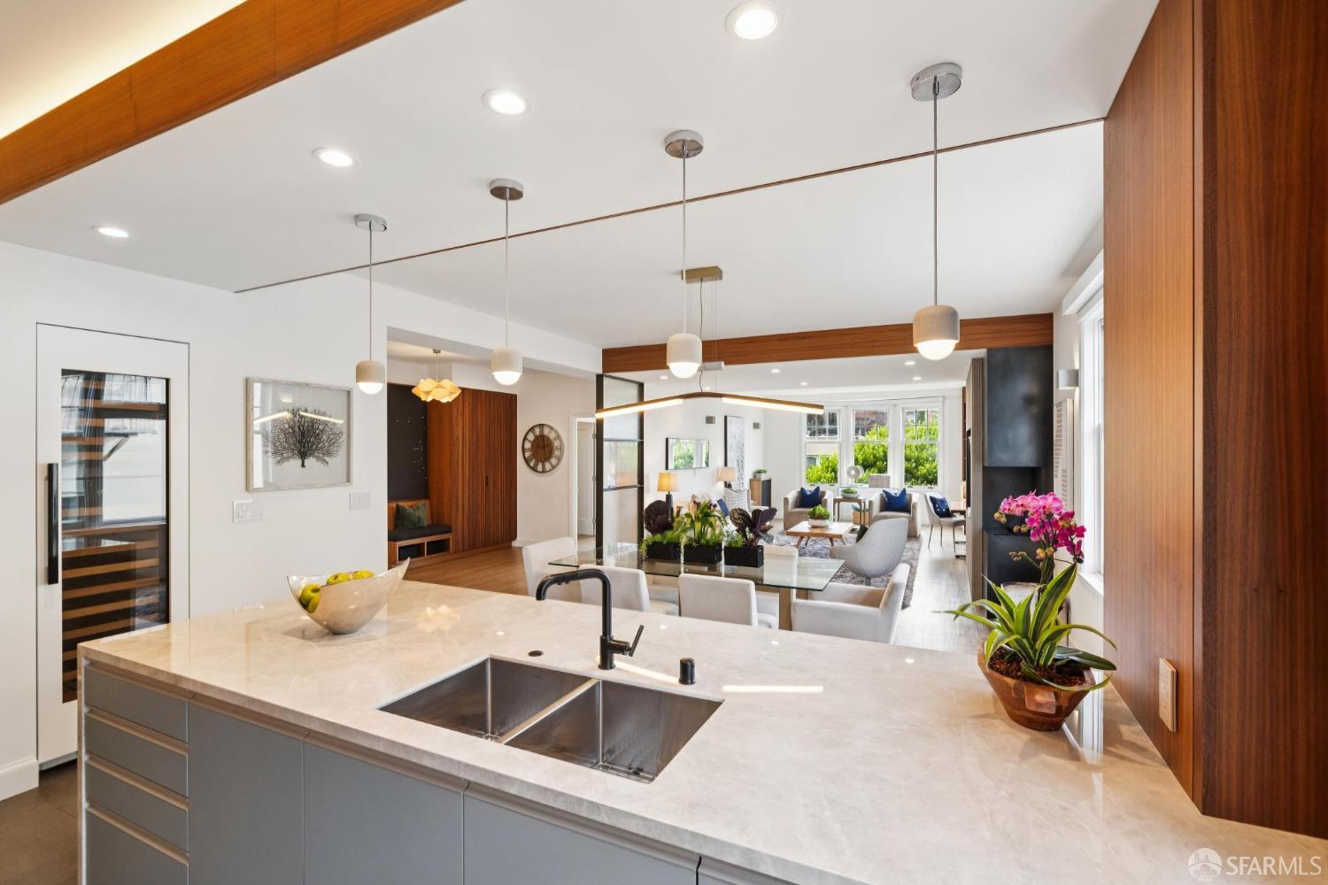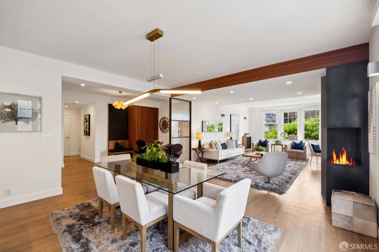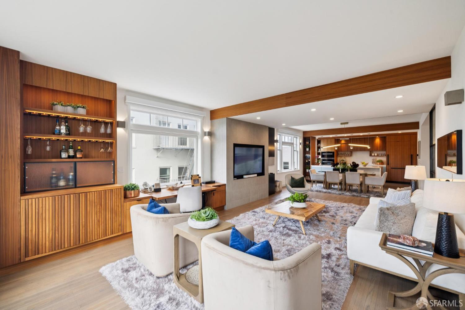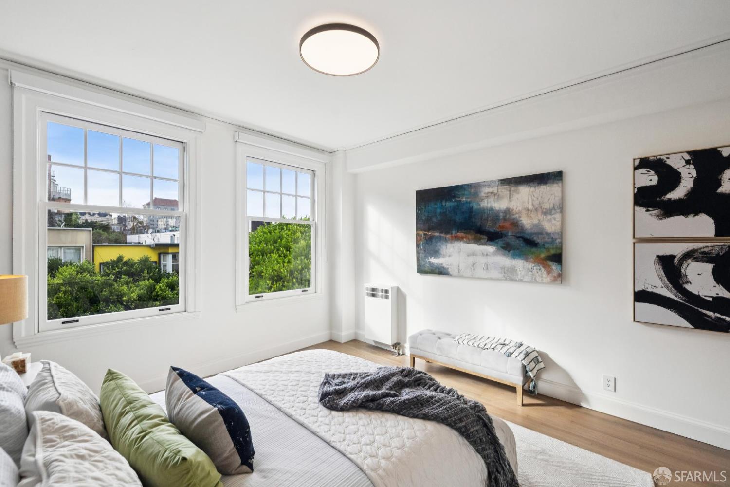 Newly-renovated & rarely-available 2-bedroom / 2-bath / 2-car parking condominium with top-of-the-line finishes & Golden Gate Bridge views is now available! Located in elegant Mediterranean-inspired Pacific Heights building with on-site manager & in-unit washer/dryer, this condo seamlessly blends old-world charm with modern conveniences! Epicurean Kitchen is both functional & beautiful, featuring large stone peninsula for casual dining or entertaining, Miele appliances, double oven, Wolf induction range, full-size temperature-controlled beverage refrigerator, walk-in pantry, abundant storage, & luxurious walnut cabinetry with accents. The spacious Living/Dining Area includes an eco-friendly fireplace that simulates flame with light & air, room for a large dining table, custom walnut built-ins with accent lighting & generous walnut uplift desk for sitting or standing. A picture window above the desk frames quintessential Golden Gate Bridge view. Two, large bedrooms & spa-like bathrooms offer retreat-style comfort. Primary Bathroom features a deep Florou soaking tub with marble, back-lit panels, heated floors, & premium finishes throughout. Custom, walk-in closets complete the condo! Common area: Posh lobby, 2 elevators, roof w/ 360-degree views of GG Bridge, Mt. Tam, Salesforce!