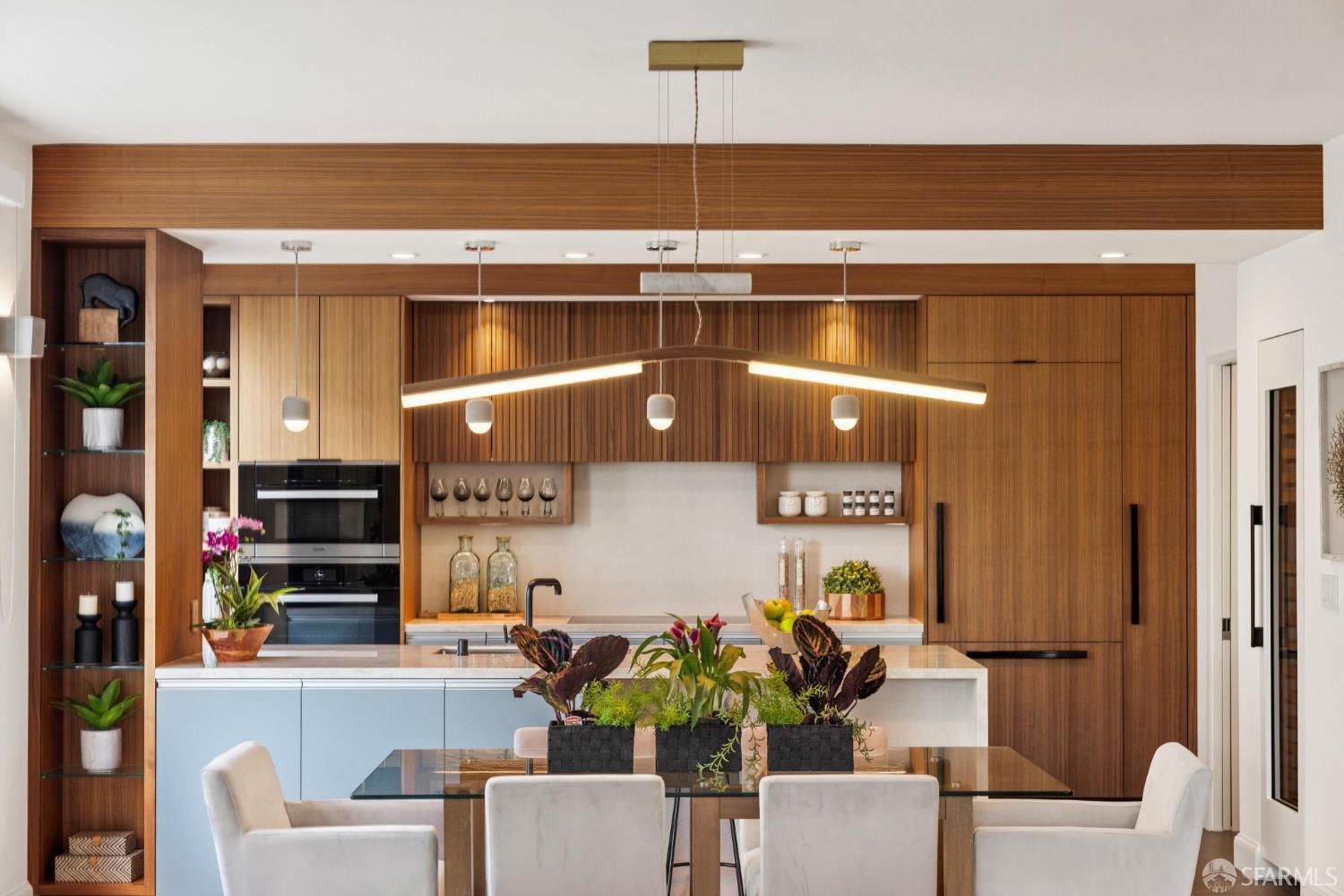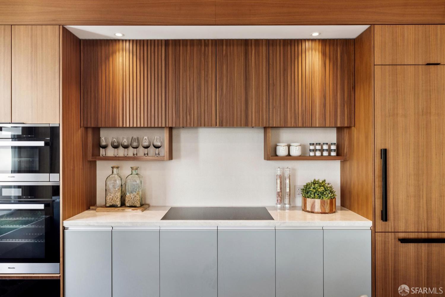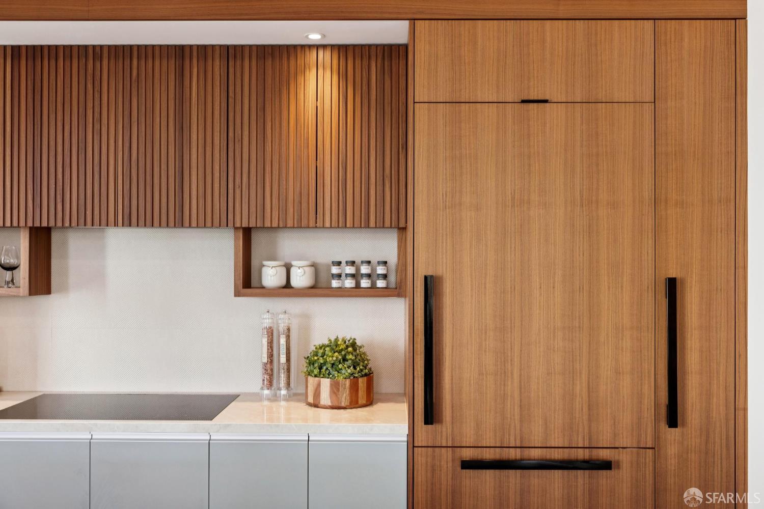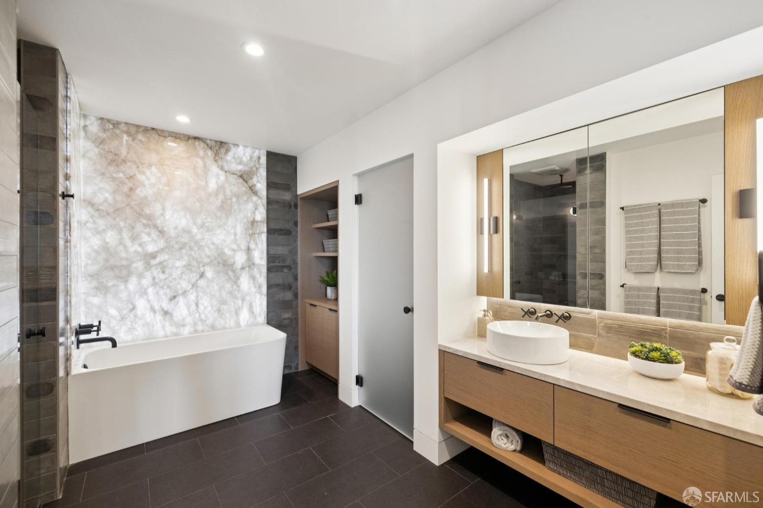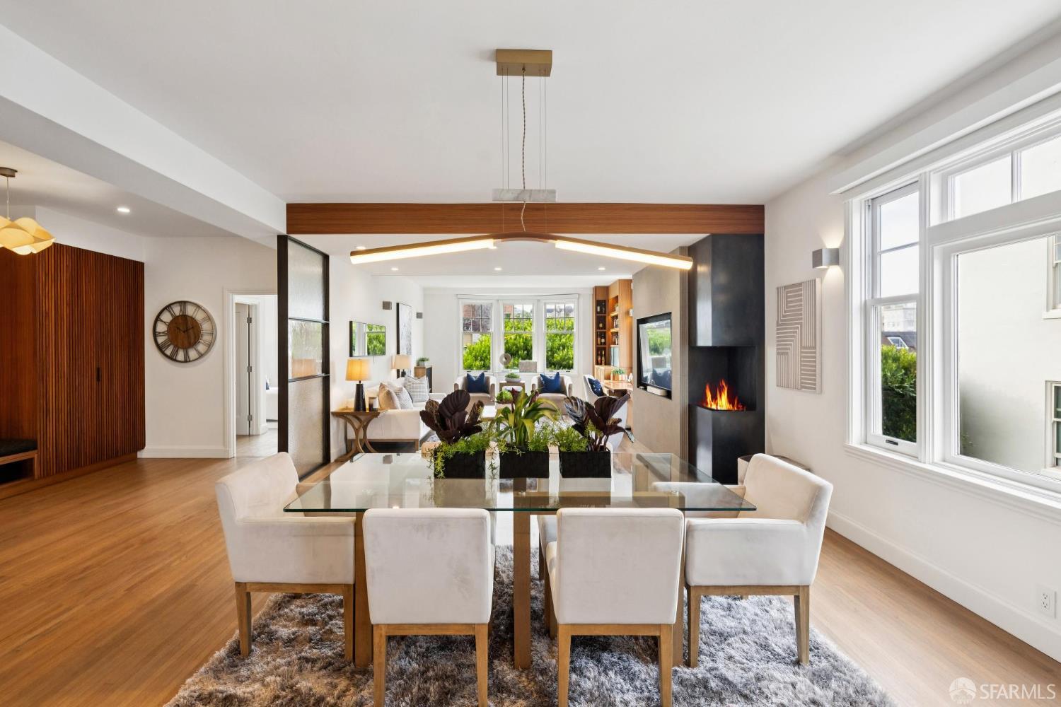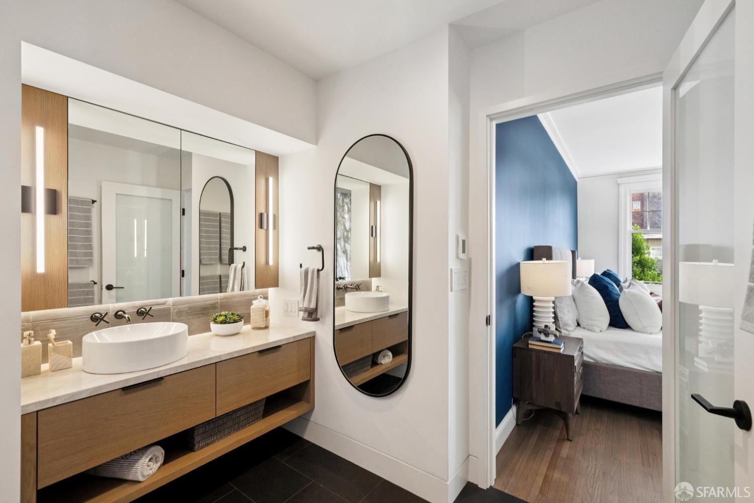 Newly-renovated & rarely-available 2-bedroom / 2-bath / 2-car parking condominium with top-of-the-line finishes & Golden Gate Bridge views is now available! Located in elegant Mediterranean-inspired Pacific Heights building with on-site manager & in-unit washer/dryer, this condo seamlessly blends old-world charm with modern conveniences! Epicurean Kitchen is both functional & beautiful, featuring large stone peninsula for casual dining or entertaining, Miele appliances, double oven, Wolf induction range, full-size temperature-controlled beverage refrigerator, walk-in pantry, abundant storage, & luxurious walnut cabinetry with accents. The spacious Living/Dining Area includes an eco-friendly fireplace that simulates flame with light & air, room for a large dining table, custom walnut built-ins with accent lighting & generous walnut uplift desk for sitting or standing. A picture window above the desk frames quintessential Golden Gate Bridge view. Two, large bedrooms & spa-like bathrooms offer retreat-style comfort. Primary Bathroom features a deep Florou soaking tub with marble, back-lit panels, heated floors, & premium finishes throughout. Custom, walk-in closets complete the condo! Common area: Posh lobby, 2 elevators, roof w/ 360-degree views of GG Bridge, Mt. Tam, Salesforce!