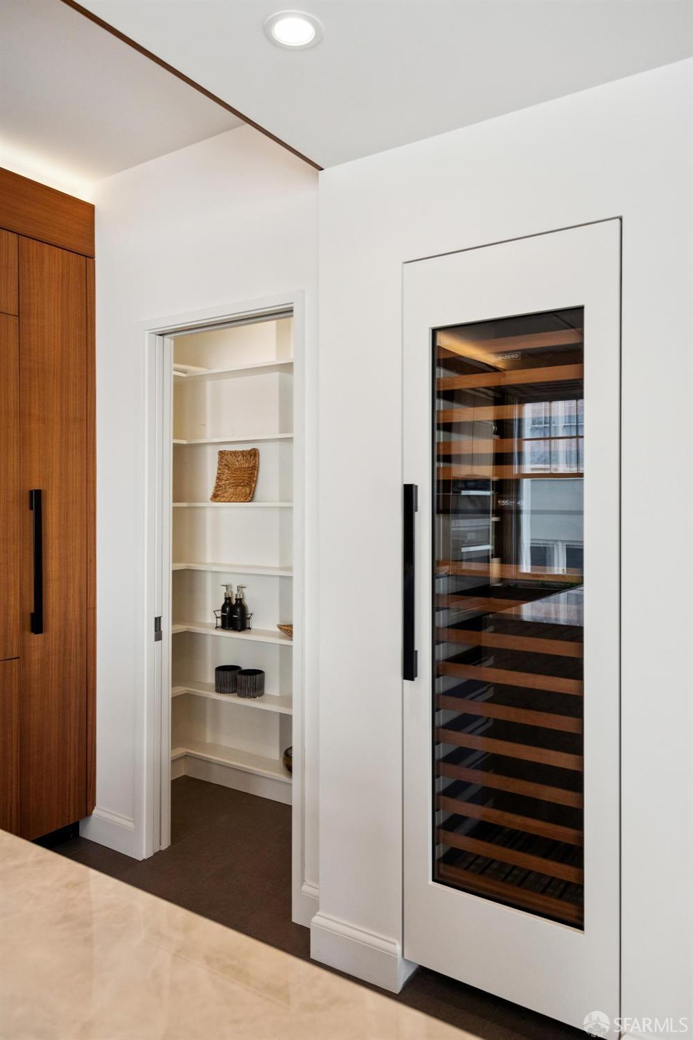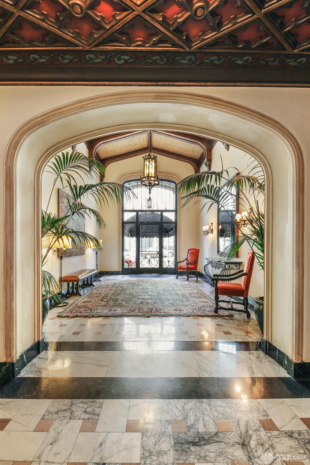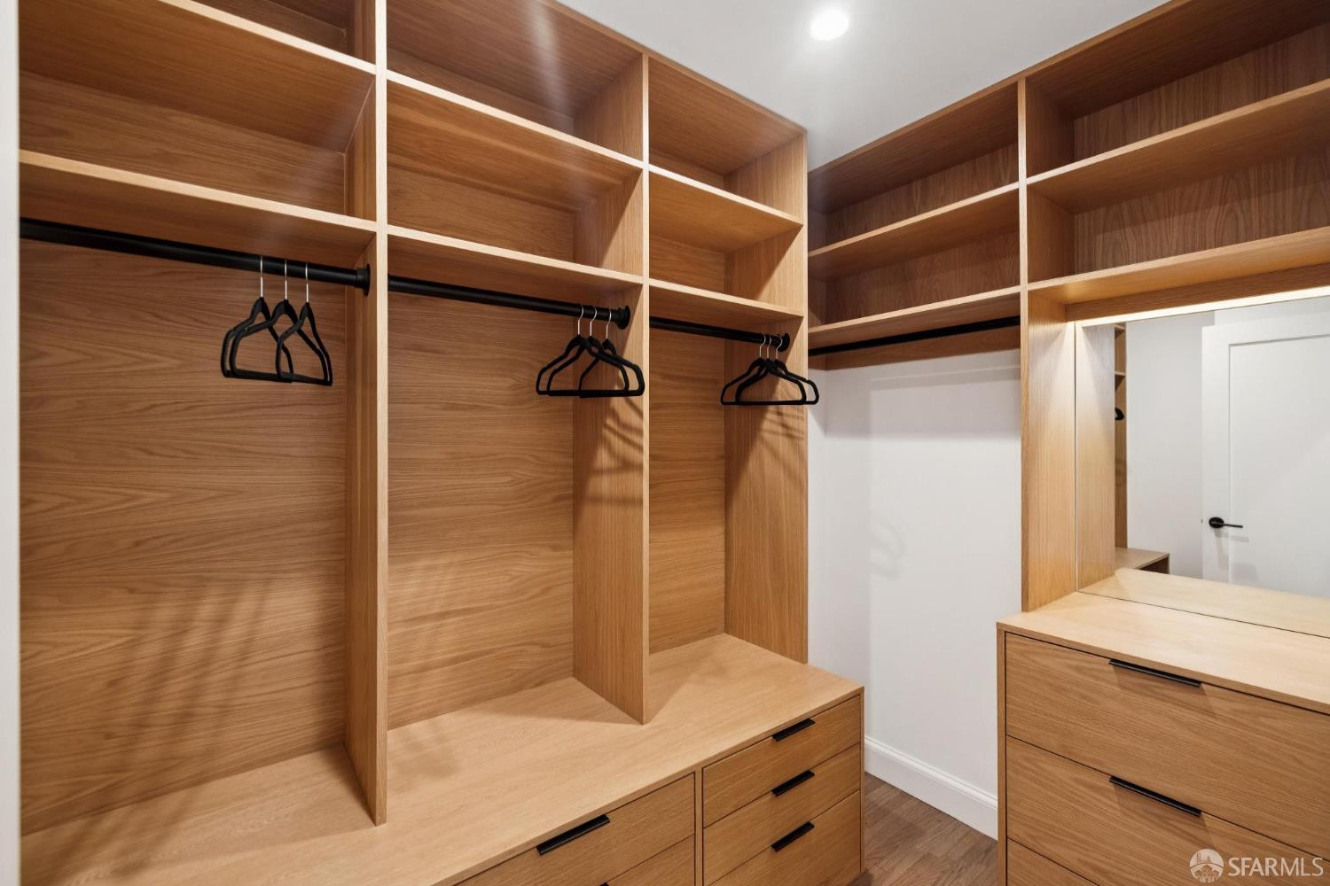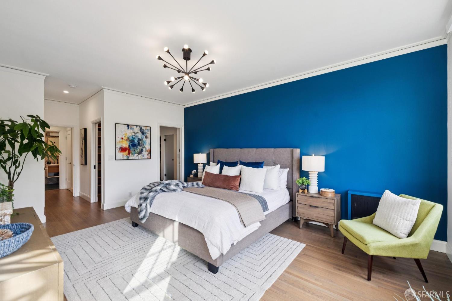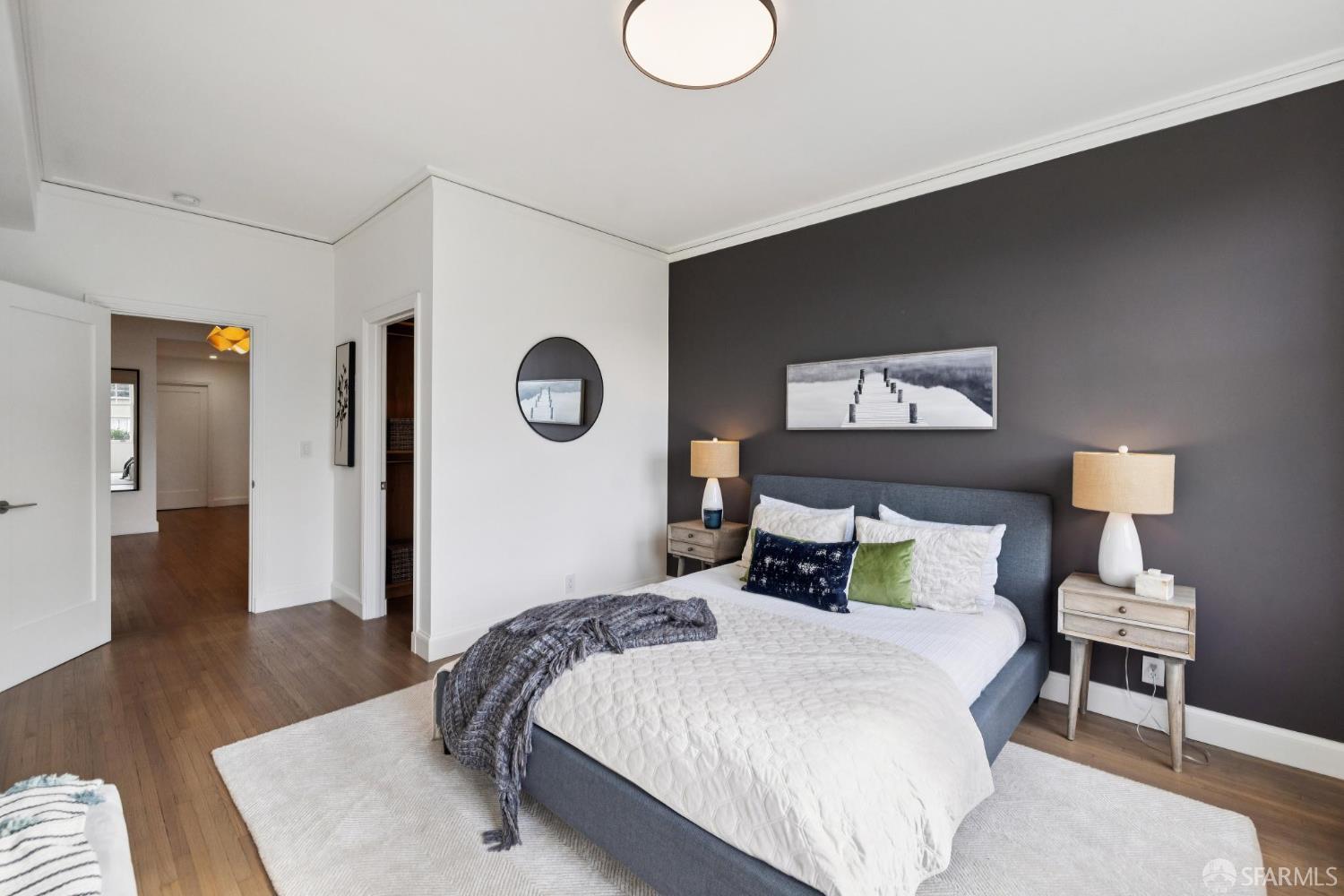 Newly-renovated & rarely-available 2-bedroom / 2-bath / 2-car parking condominium with top-of-the-line finishes & Golden Gate Bridge views is now available! Located in elegant Mediterranean-inspired Pacific Heights building with on-site manager & in-unit washer/dryer, this condo seamlessly blends old-world charm with modern conveniences! Epicurean Kitchen is both functional & beautiful, featuring large stone peninsula for casual dining or entertaining, Miele appliances, double oven, Wolf induction range, full-size temperature-controlled beverage refrigerator, walk-in pantry, abundant storage, & luxurious walnut cabinetry with accents. The spacious Living/Dining Area includes an eco-friendly fireplace that simulates flame with light & air, room for a large dining table, custom walnut built-ins with accent lighting & generous walnut uplift desk for sitting or standing. A picture window above the desk frames quintessential Golden Gate Bridge view. Two, large bedrooms & spa-like bathrooms offer retreat-style comfort. Primary Bathroom features a deep Florou soaking tub with marble, back-lit panels, heated floors, & premium finishes throughout. Custom, walk-in closets complete the condo! Common area: Posh lobby, 2 elevators, roof w/ 360-degree views of GG Bridge, Mt. Tam, Salesforce!
