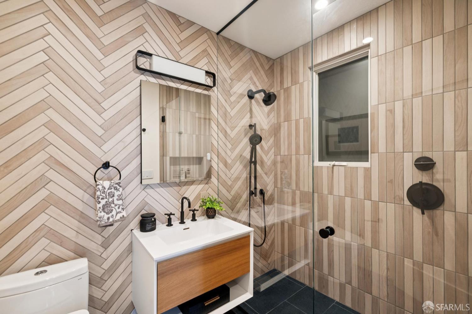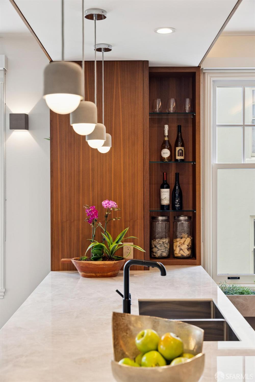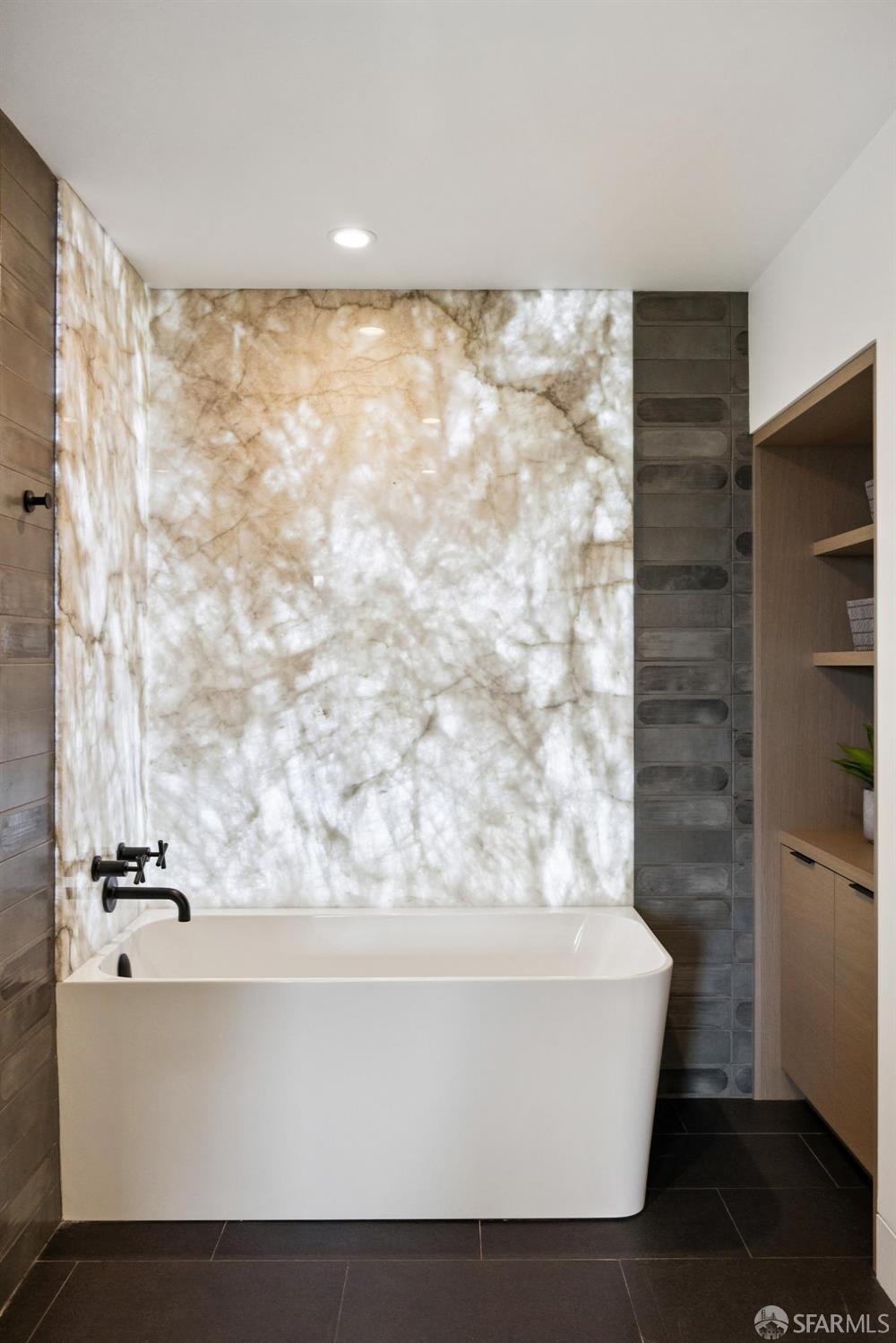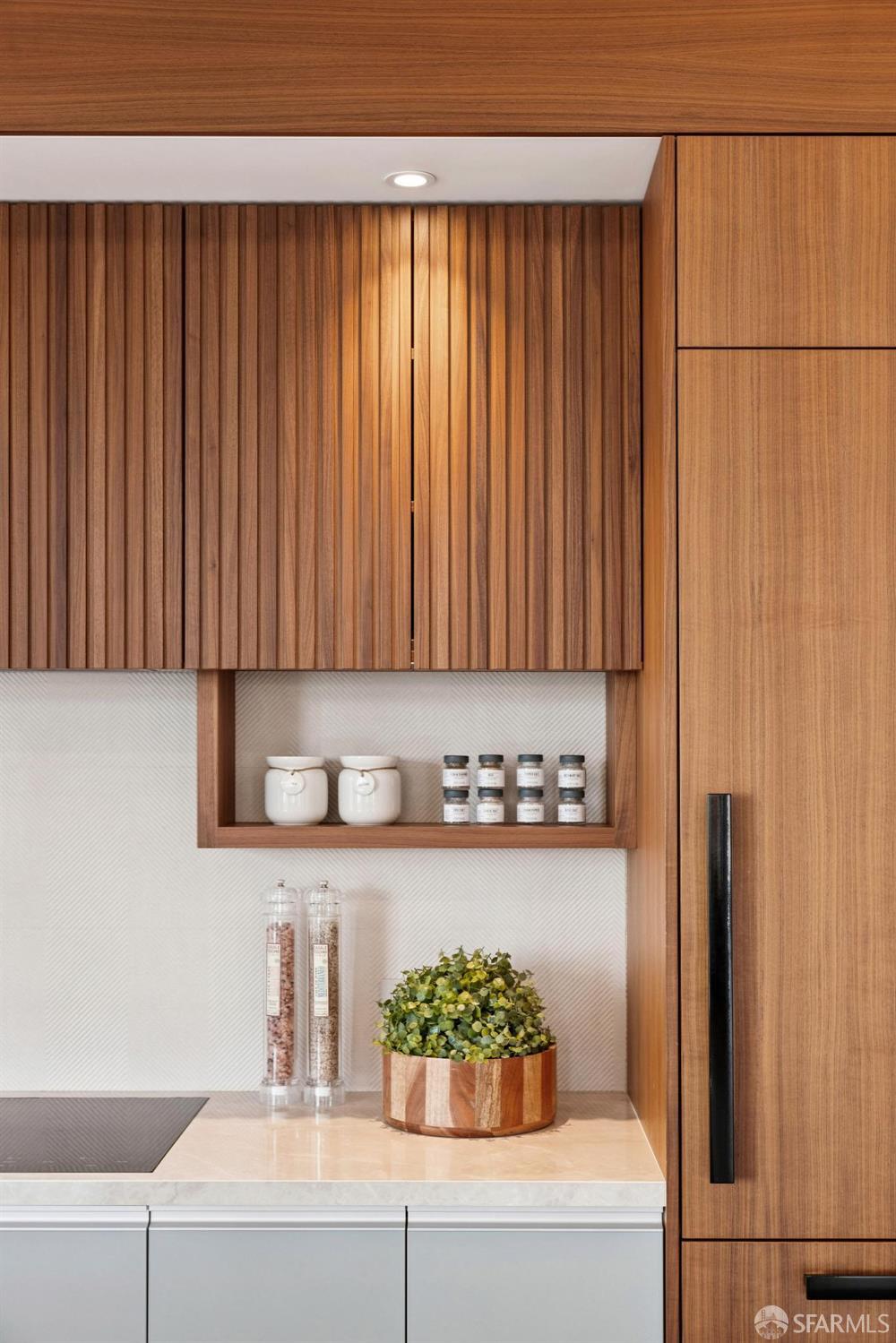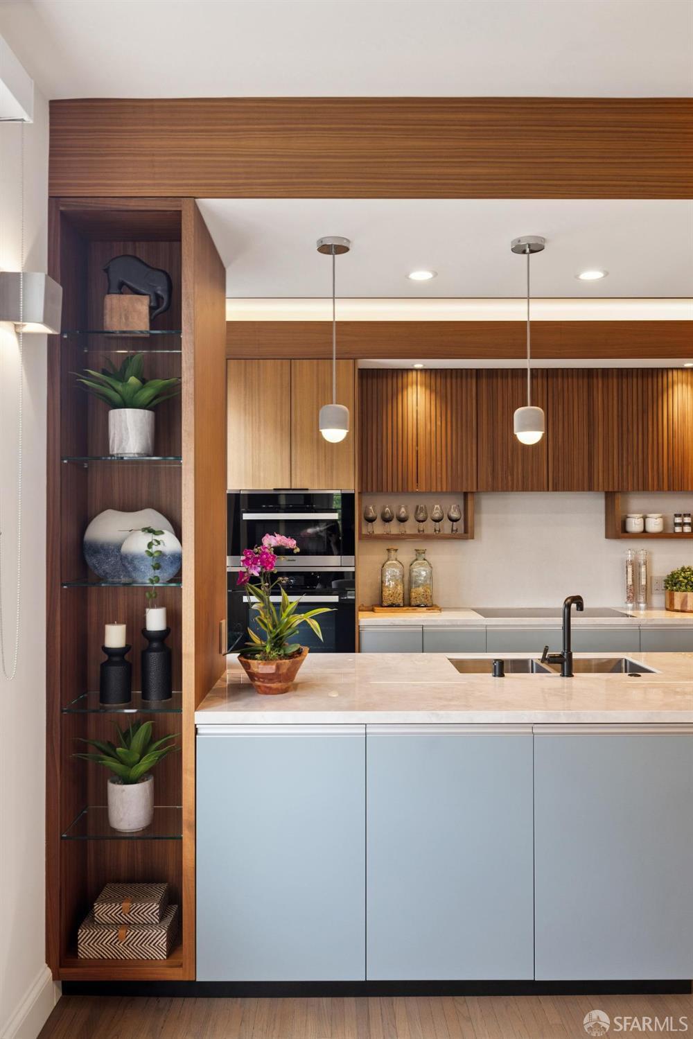Newly-renovated & rarely-available 2-bedroom / 2-bath / 2-car parking condominium with top-of-the-line finishes & Golden Gate Bridge views is now available! Located in elegant Mediterranean-inspired Pacific Heights building with on-site manager & in-unit washer/dryer, this condo seamlessly blends old-world charm with modern conveniences! Epicurean Kitchen is both functional & beautiful, featuring large stone peninsula for casual dining or entertaining, Miele appliances, double oven, Wolf induction range, full-size temperature-controlled beverage refrigerator, walk-in pantry, abundant storage, & luxurious walnut cabinetry with accents. The spacious Living/Dining Area includes an eco-friendly fireplace that simulates flame with light & air, room for a large dining table, custom walnut built-ins with accent lighting & generous walnut uplift desk for sitting or standing. A picture window above the desk frames quintessential Golden Gate Bridge view. Two, large bedrooms & spa-like bathrooms offer retreat-style comfort. Primary Bathroom features a deep Florou soaking tub with marble, back-lit panels, heated floors, & premium finishes throughout. Custom, walk-in closets complete the condo! Common area: Posh lobby, 2 elevators, roof w/ 360-degree views of GG Bridge, Mt. Tam, Salesforce!