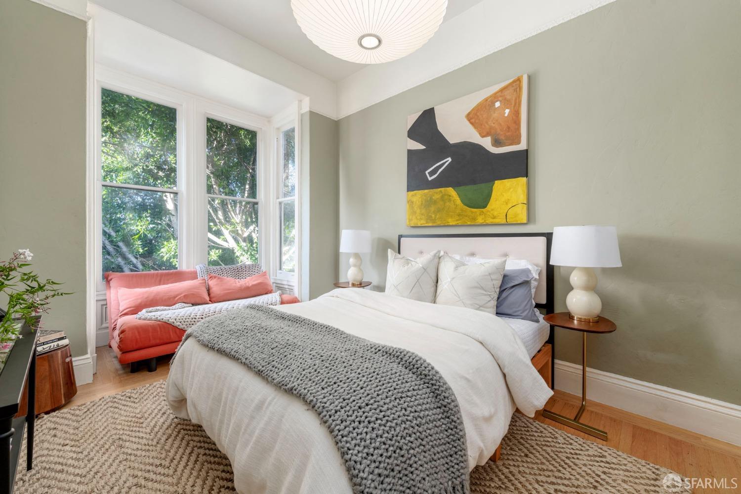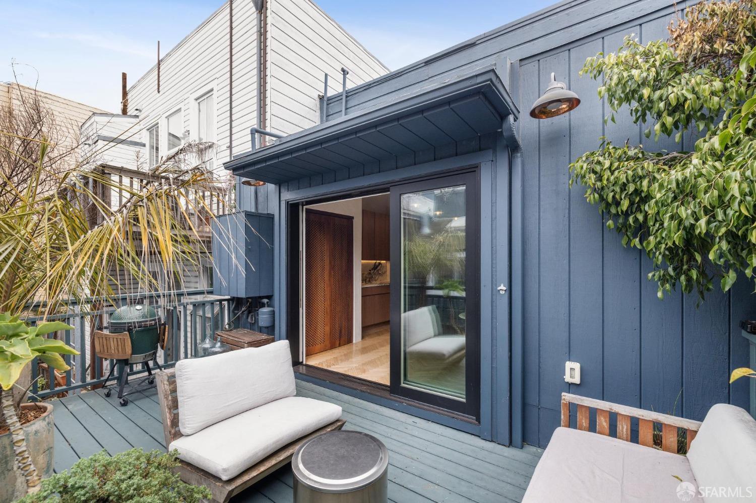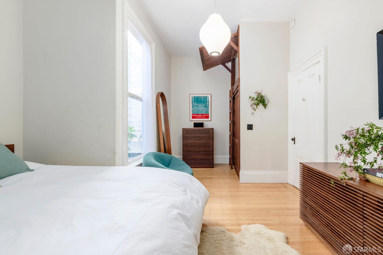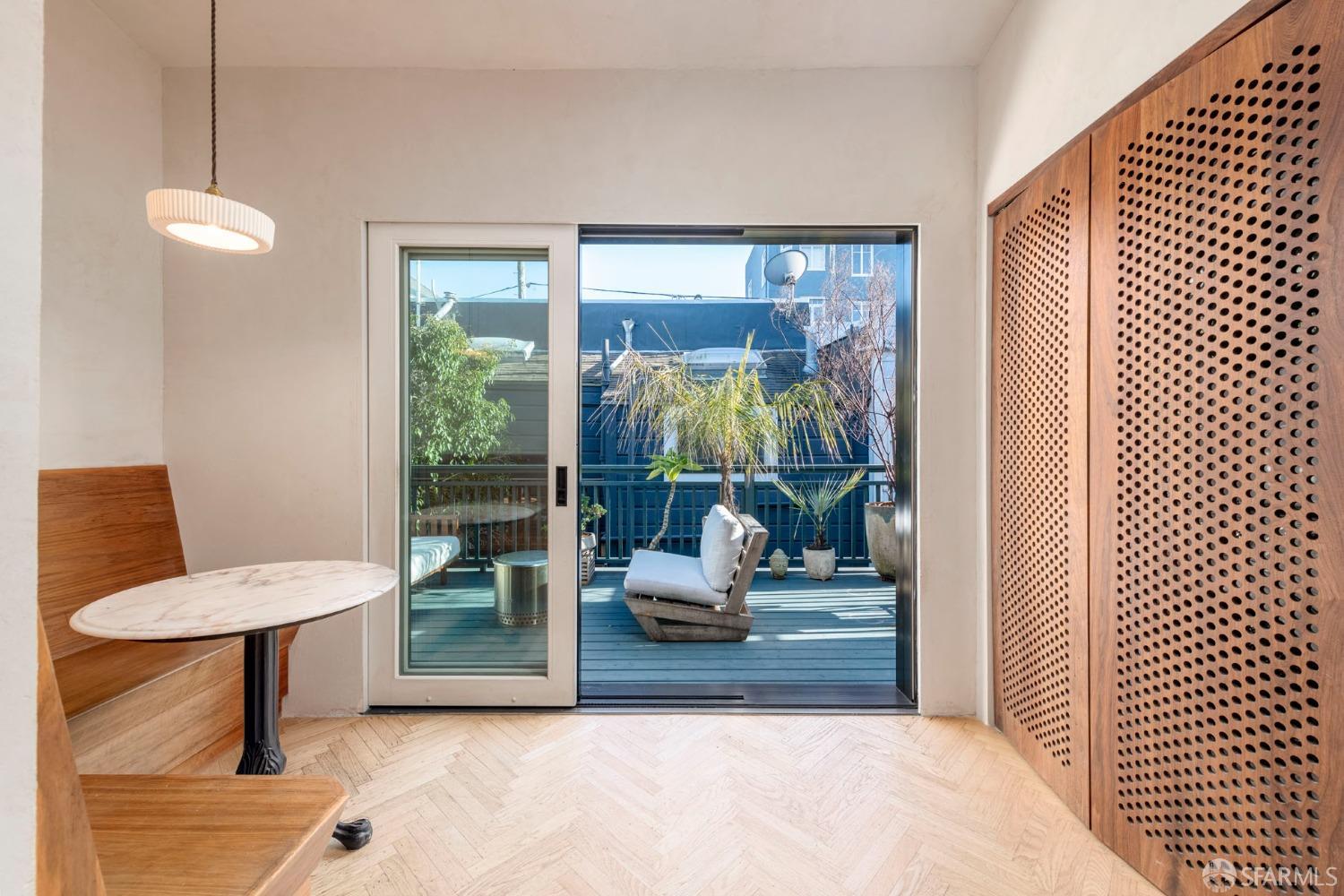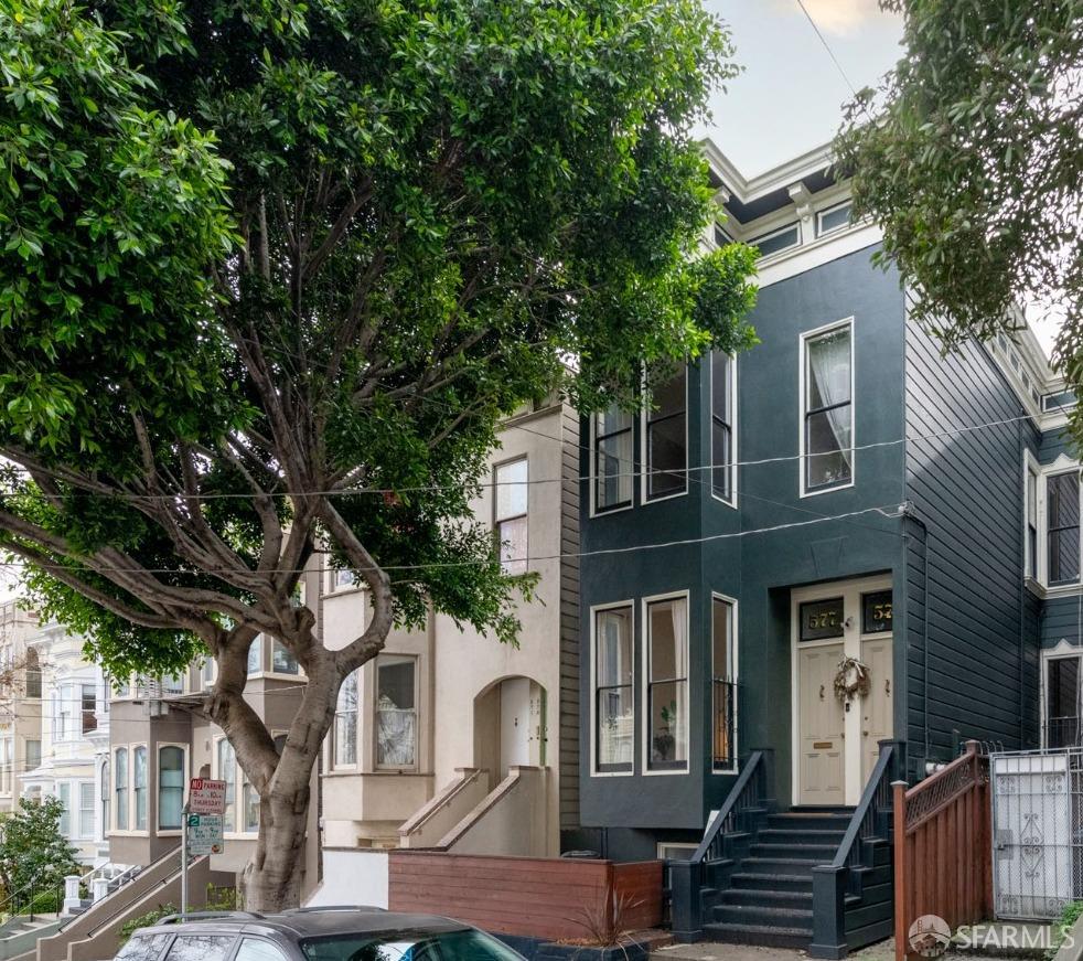 Step into the world of Victorian charm and contemporary luxury at 579 Fell Street. Nestled in the vibrant heart of Hayes Valley, this top floor condo has been meticulously renovated to the tune of over $350,000 by a renowned celebrity designer. This 1,389 sq ft home boasts 3 bedrooms, 1 bath, and 12-ft ceilings, creating a spacious and inviting atmosphere. The living space features custom built-in furniture, herringbone hardwood floors, and vintage Murano chandeliers, while the remodeled gourmet kitchen is a culinary paradise with top-of-the-line appliances, Italian marble countertops, and a custom walnut kitchen nook. Step outside onto the large private deck through high-end folding sliding doors, creating a seamless indoor/outdoor experience. The master bedroom offers a tranquil escape with a large custom closet, while the oversized bathroom exudes luxury with Venetian Plaster walls, a travertine wrapped sink and soaking tub, and a walk-in shower. Additionally, the property includes 1 leased parking space for added convenience. Transparent pricing!