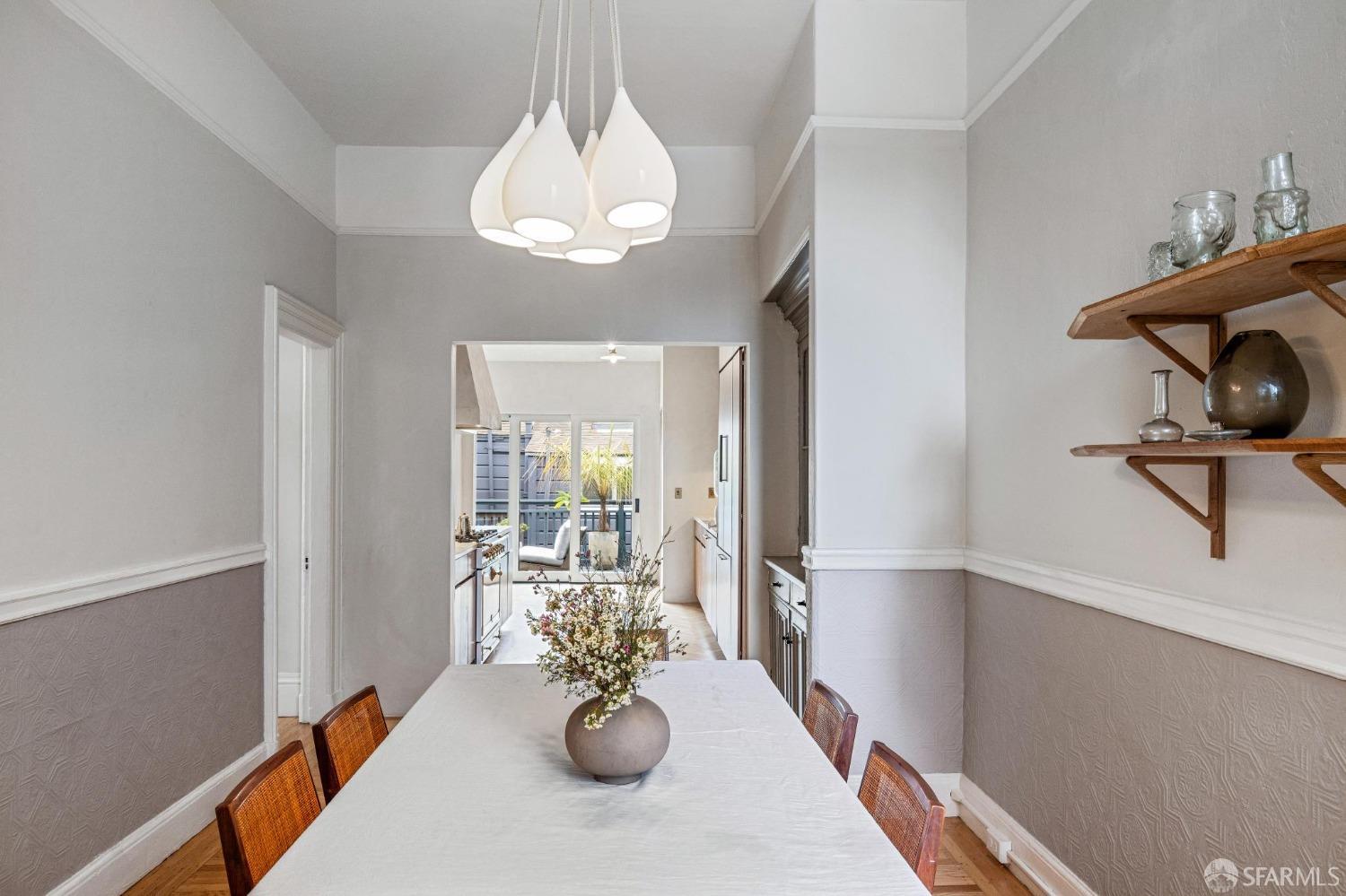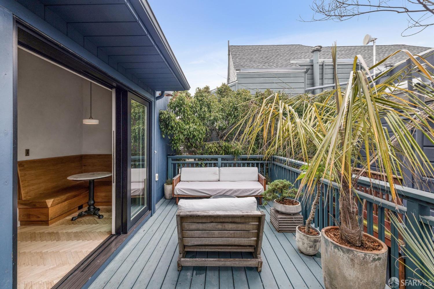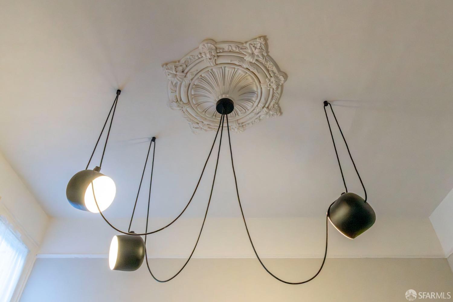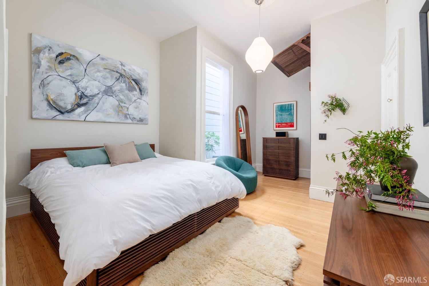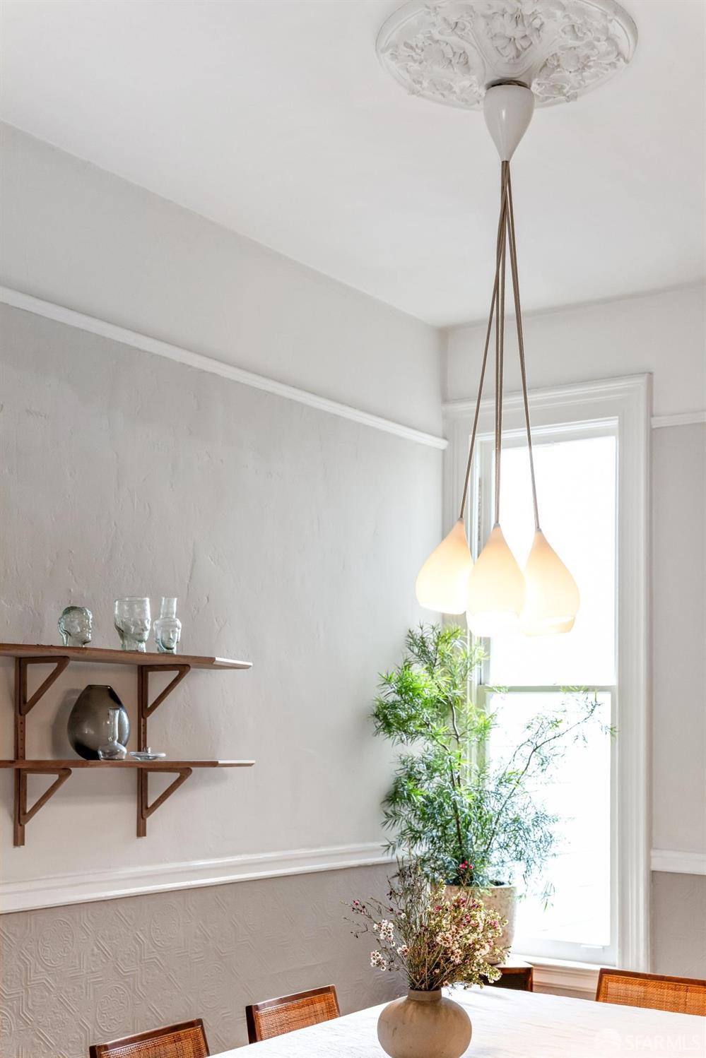 Step into the world of Victorian charm and contemporary luxury at 579 Fell Street. Nestled in the vibrant heart of Hayes Valley, this top floor condo has been meticulously renovated to the tune of over $350,000 by a renowned celebrity designer. This 1,389 sq ft home boasts 3 bedrooms, 1 bath, and 12-ft ceilings, creating a spacious and inviting atmosphere. The living space features custom built-in furniture, herringbone hardwood floors, and vintage Murano chandeliers, while the remodeled gourmet kitchen is a culinary paradise with top-of-the-line appliances, Italian marble countertops, and a custom walnut kitchen nook. Step outside onto the large private deck through high-end folding sliding doors, creating a seamless indoor/outdoor experience. The master bedroom offers a tranquil escape with a large custom closet, while the oversized bathroom exudes luxury with Venetian Plaster walls, a travertine wrapped sink and soaking tub, and a walk-in shower. Additionally, the property includes 1 leased parking space for added convenience. Transparent pricing!