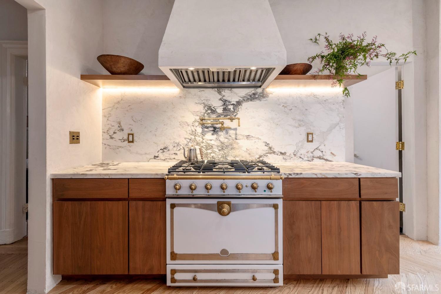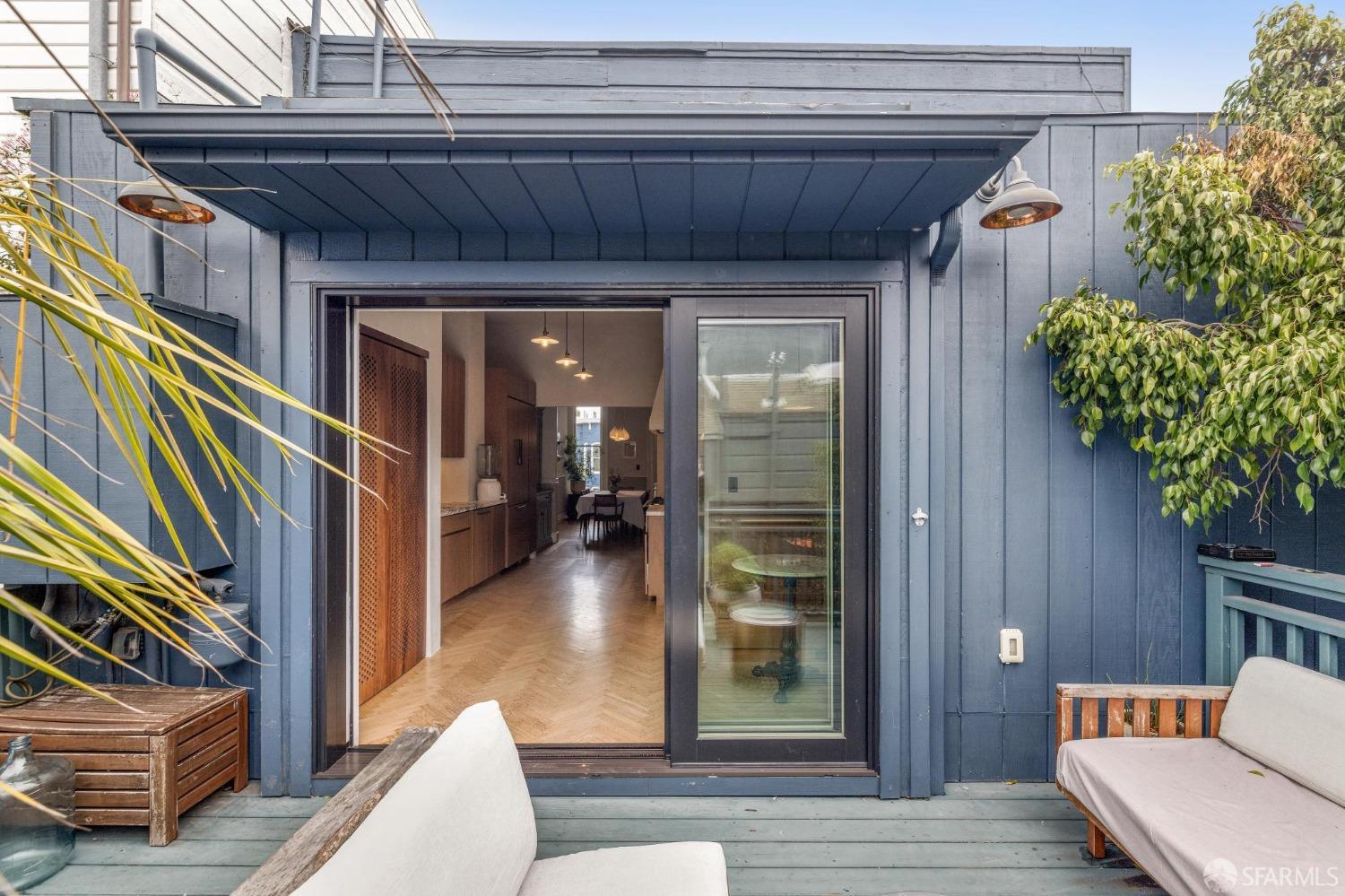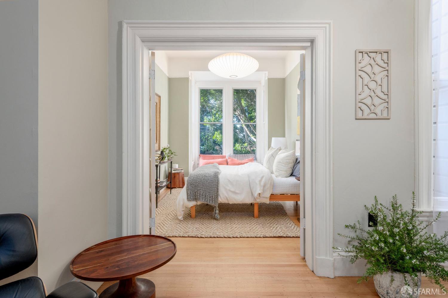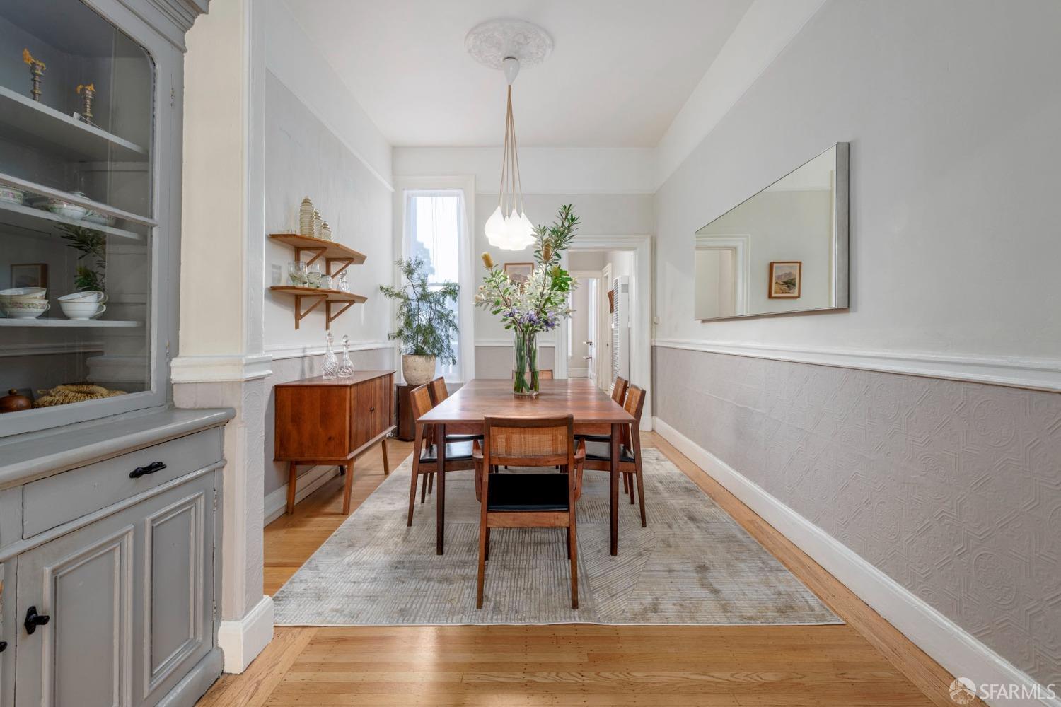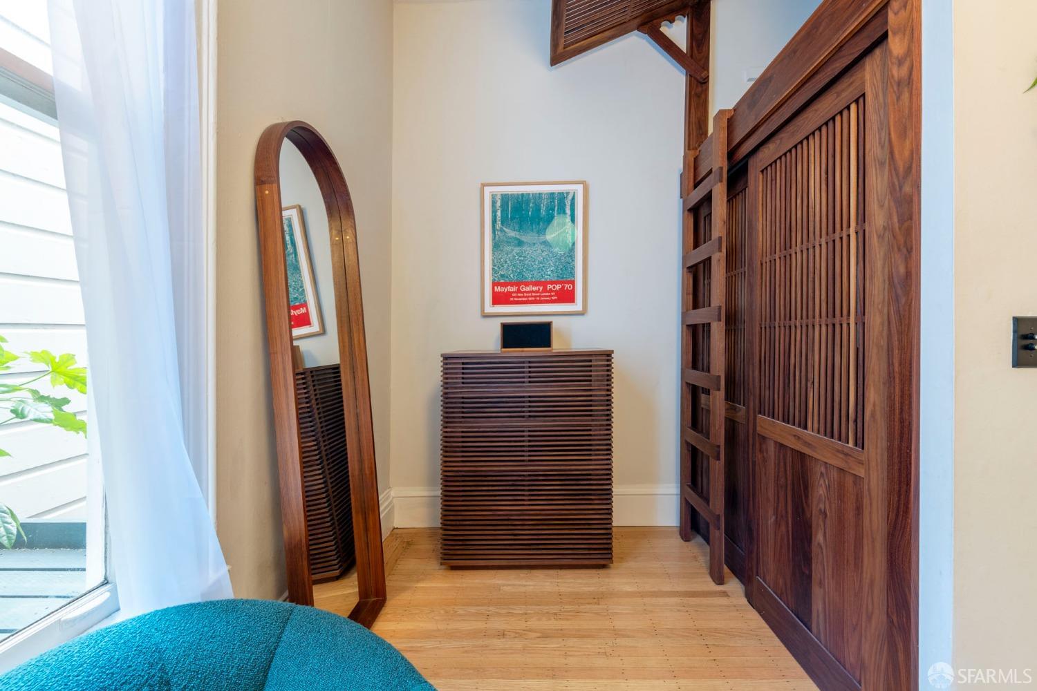 Step into the world of Victorian charm and contemporary luxury at 579 Fell Street. Nestled in the vibrant heart of Hayes Valley, this top floor condo has been meticulously renovated to the tune of over $350,000 by a renowned celebrity designer. This 1,389 sq ft home boasts 3 bedrooms, 1 bath, and 12-ft ceilings, creating a spacious and inviting atmosphere. The living space features custom built-in furniture, herringbone hardwood floors, and vintage Murano chandeliers, while the remodeled gourmet kitchen is a culinary paradise with top-of-the-line appliances, Italian marble countertops, and a custom walnut kitchen nook. Step outside onto the large private deck through high-end folding sliding doors, creating a seamless indoor/outdoor experience. The master bedroom offers a tranquil escape with a large custom closet, while the oversized bathroom exudes luxury with Venetian Plaster walls, a travertine wrapped sink and soaking tub, and a walk-in shower. Additionally, the property includes 1 leased parking space for added convenience. Transparent pricing!