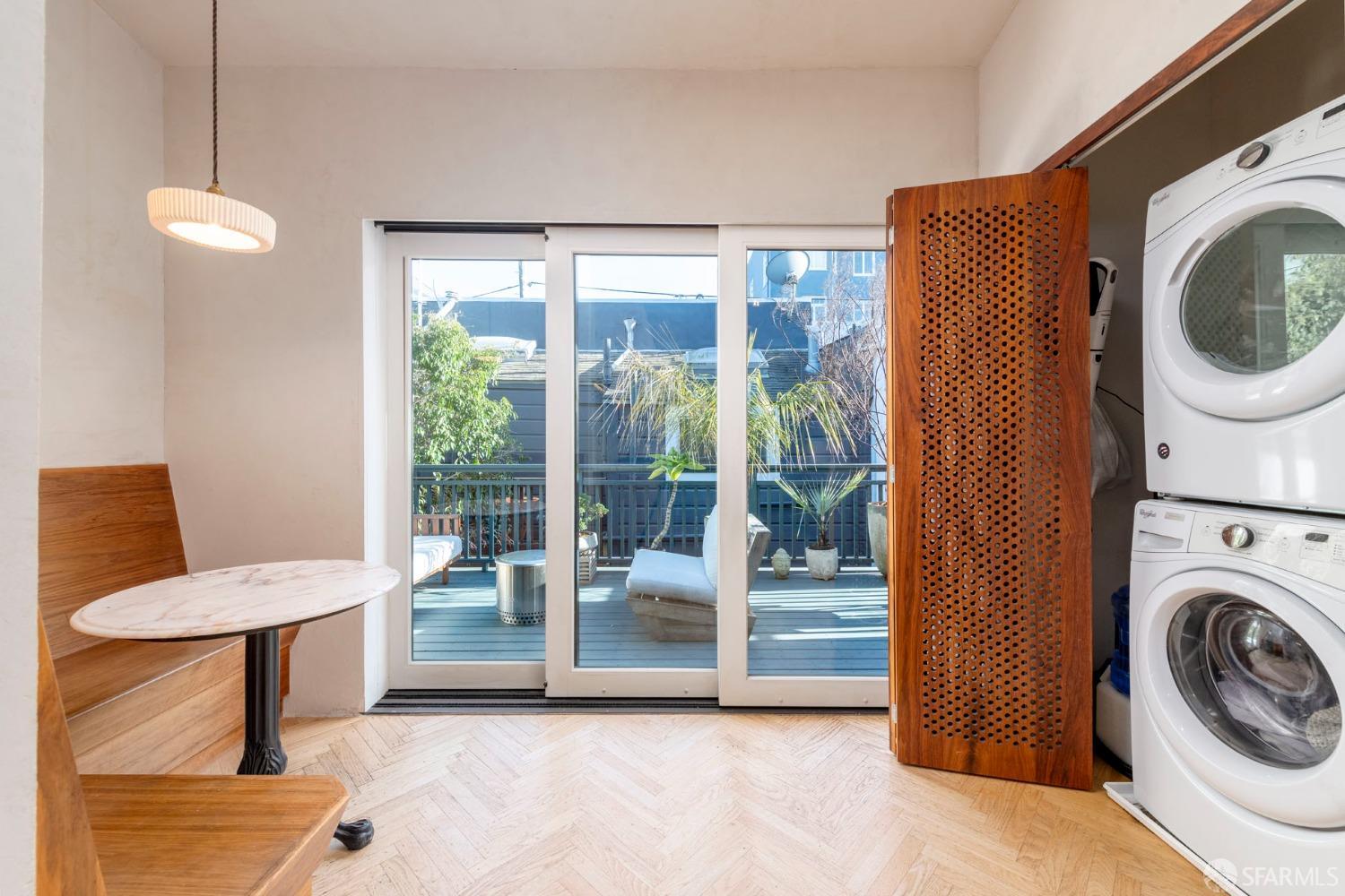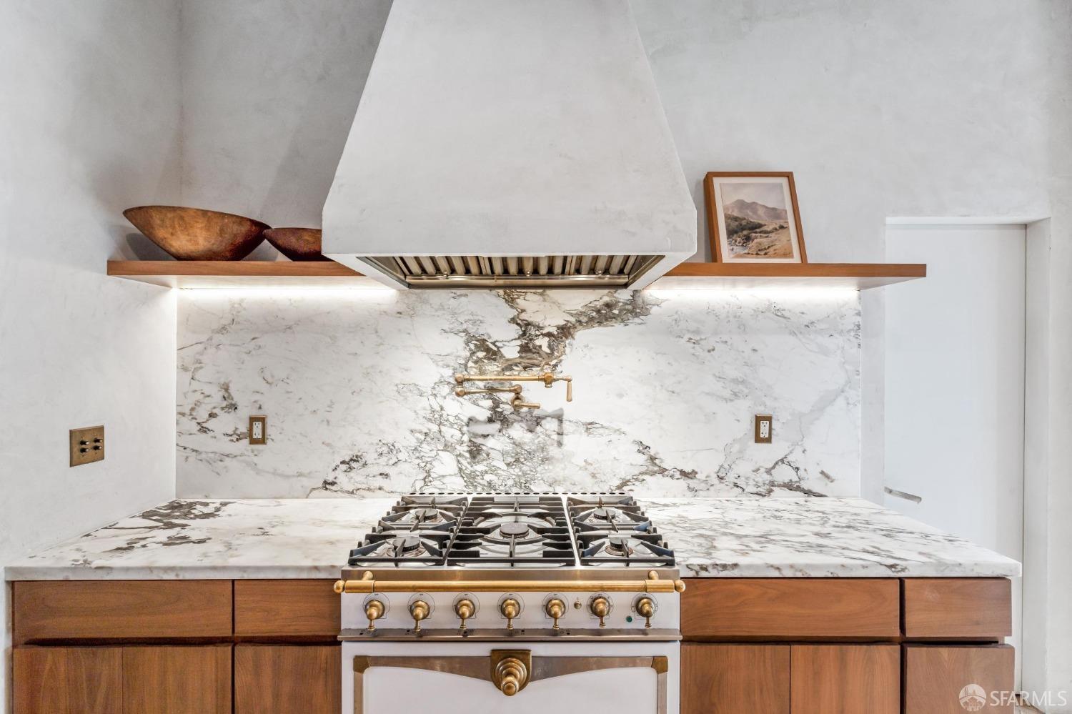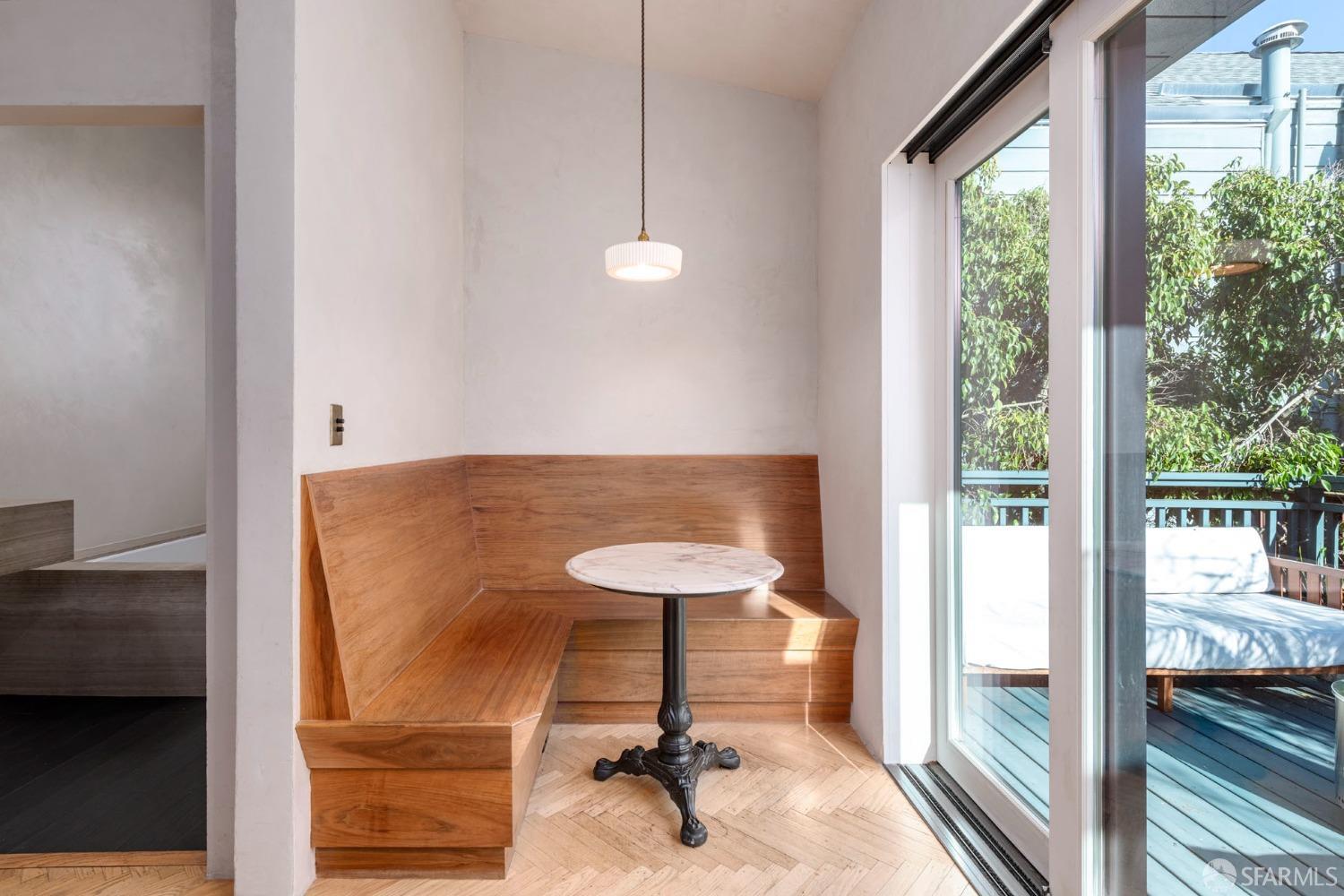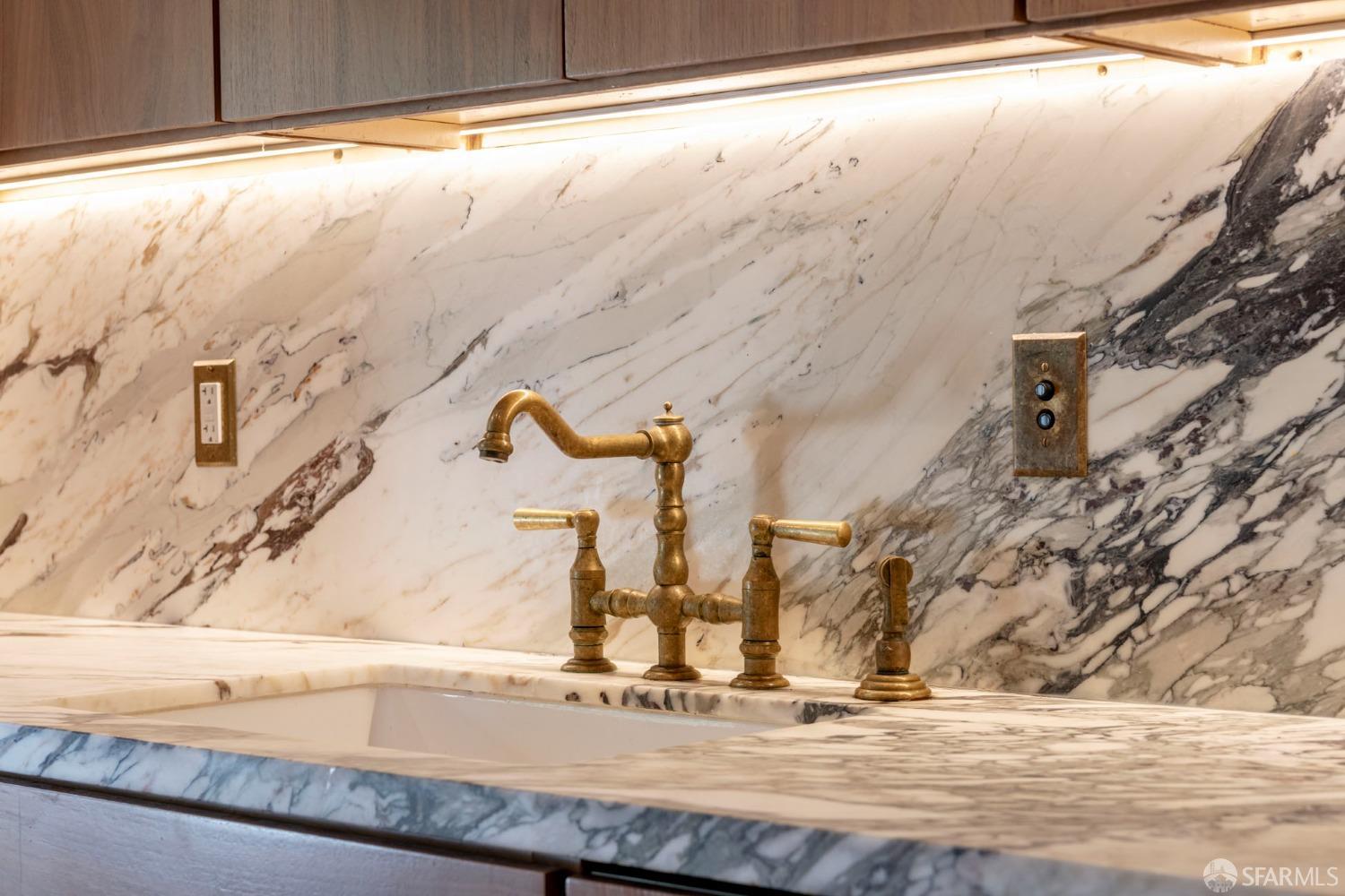 Step into the world of Victorian charm and contemporary luxury at 579 Fell Street. Nestled in the vibrant heart of Hayes Valley, this top floor condo has been meticulously renovated to the tune of over $350,000 by a renowned celebrity designer. This 1,389 sq ft home boasts 3 bedrooms, 1 bath, and 12-ft ceilings, creating a spacious and inviting atmosphere. The living space features custom built-in furniture, herringbone hardwood floors, and vintage Murano chandeliers, while the remodeled gourmet kitchen is a culinary paradise with top-of-the-line appliances, Italian marble countertops, and a custom walnut kitchen nook. Step outside onto the large private deck through high-end folding sliding doors, creating a seamless indoor/outdoor experience. The master bedroom offers a tranquil escape with a large custom closet, while the oversized bathroom exudes luxury with Venetian Plaster walls, a travertine wrapped sink and soaking tub, and a walk-in shower. Additionally, the property includes 1 leased parking space for added convenience. Transparent pricing!