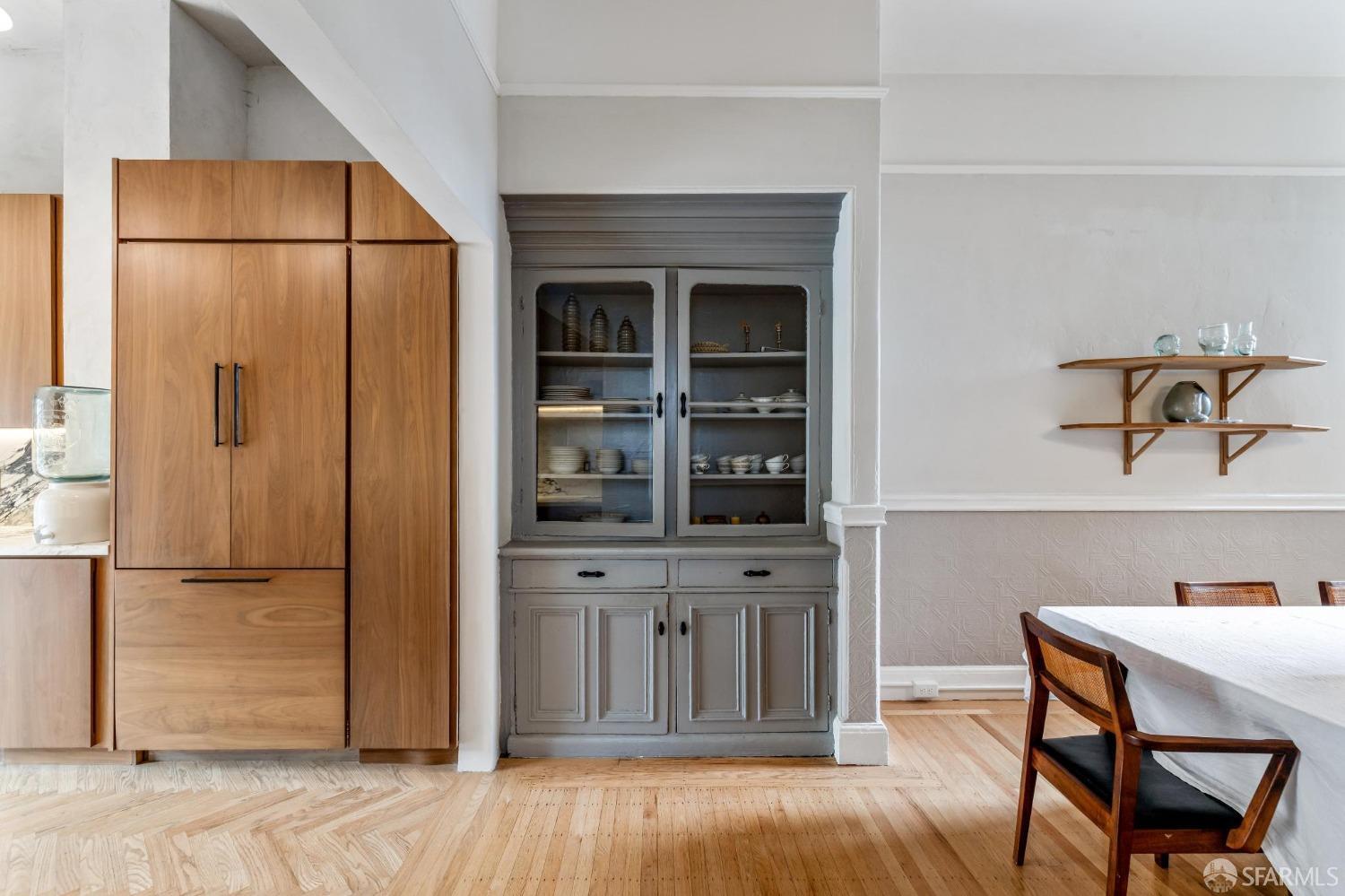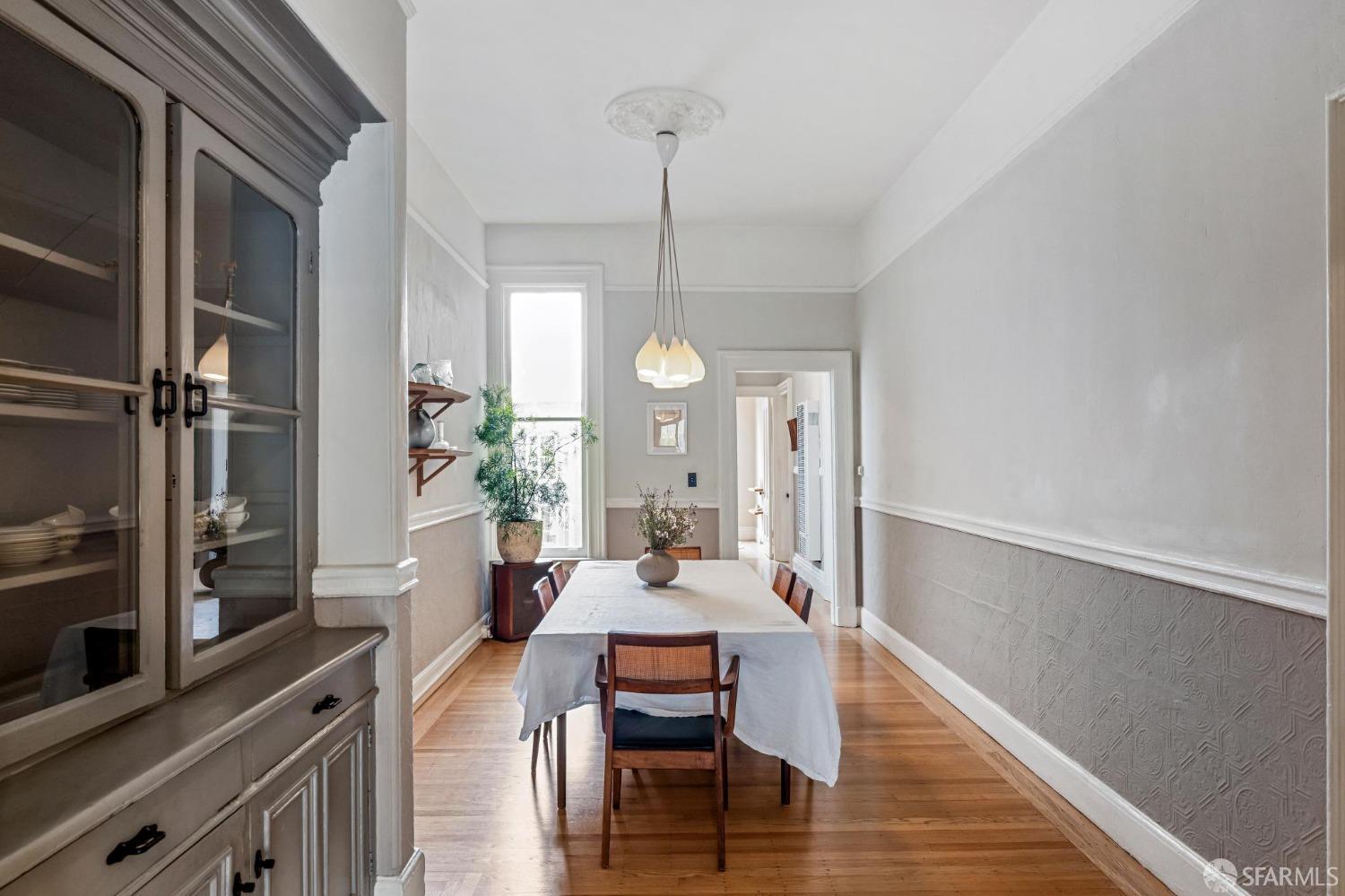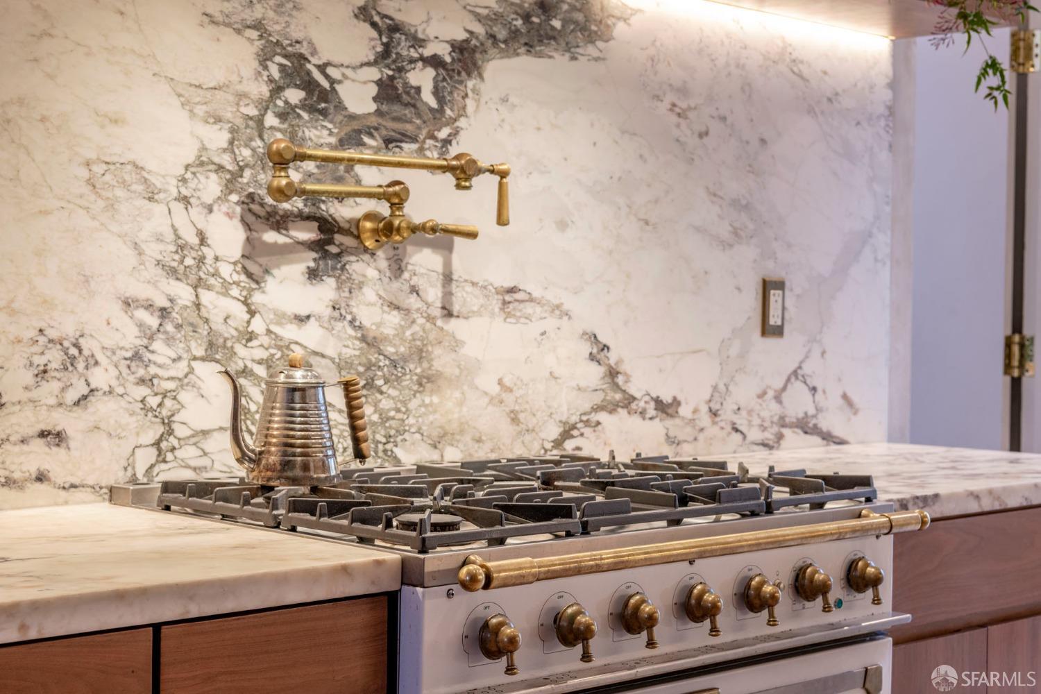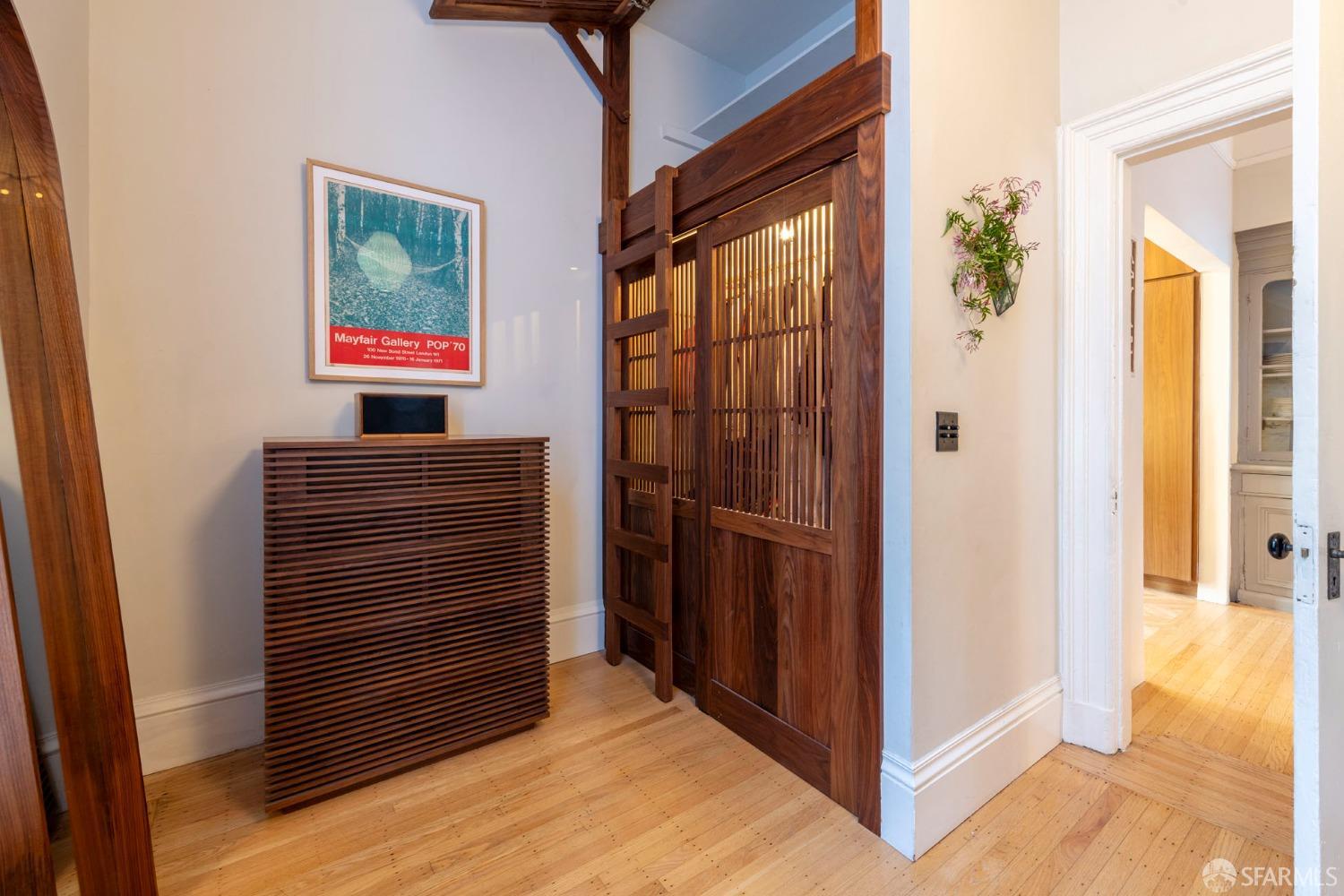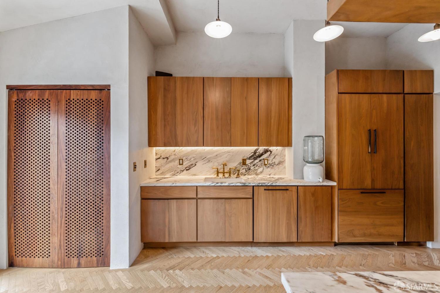 Step into the world of Victorian charm and contemporary luxury at 579 Fell Street. Nestled in the vibrant heart of Hayes Valley, this top floor condo has been meticulously renovated to the tune of over $350,000 by a renowned celebrity designer. This 1,389 sq ft home boasts 3 bedrooms, 1 bath, and 12-ft ceilings, creating a spacious and inviting atmosphere. The living space features custom built-in furniture, herringbone hardwood floors, and vintage Murano chandeliers, while the remodeled gourmet kitchen is a culinary paradise with top-of-the-line appliances, Italian marble countertops, and a custom walnut kitchen nook. Step outside onto the large private deck through high-end folding sliding doors, creating a seamless indoor/outdoor experience. The master bedroom offers a tranquil escape with a large custom closet, while the oversized bathroom exudes luxury with Venetian Plaster walls, a travertine wrapped sink and soaking tub, and a walk-in shower. Additionally, the property includes 1 leased parking space for added convenience. Transparent pricing!