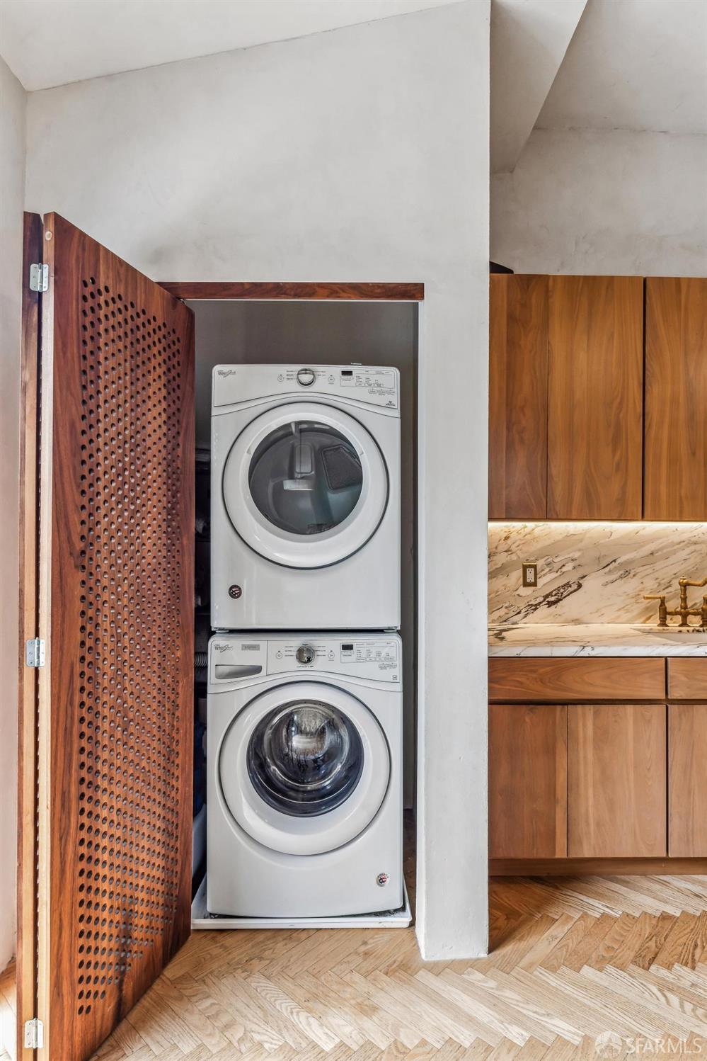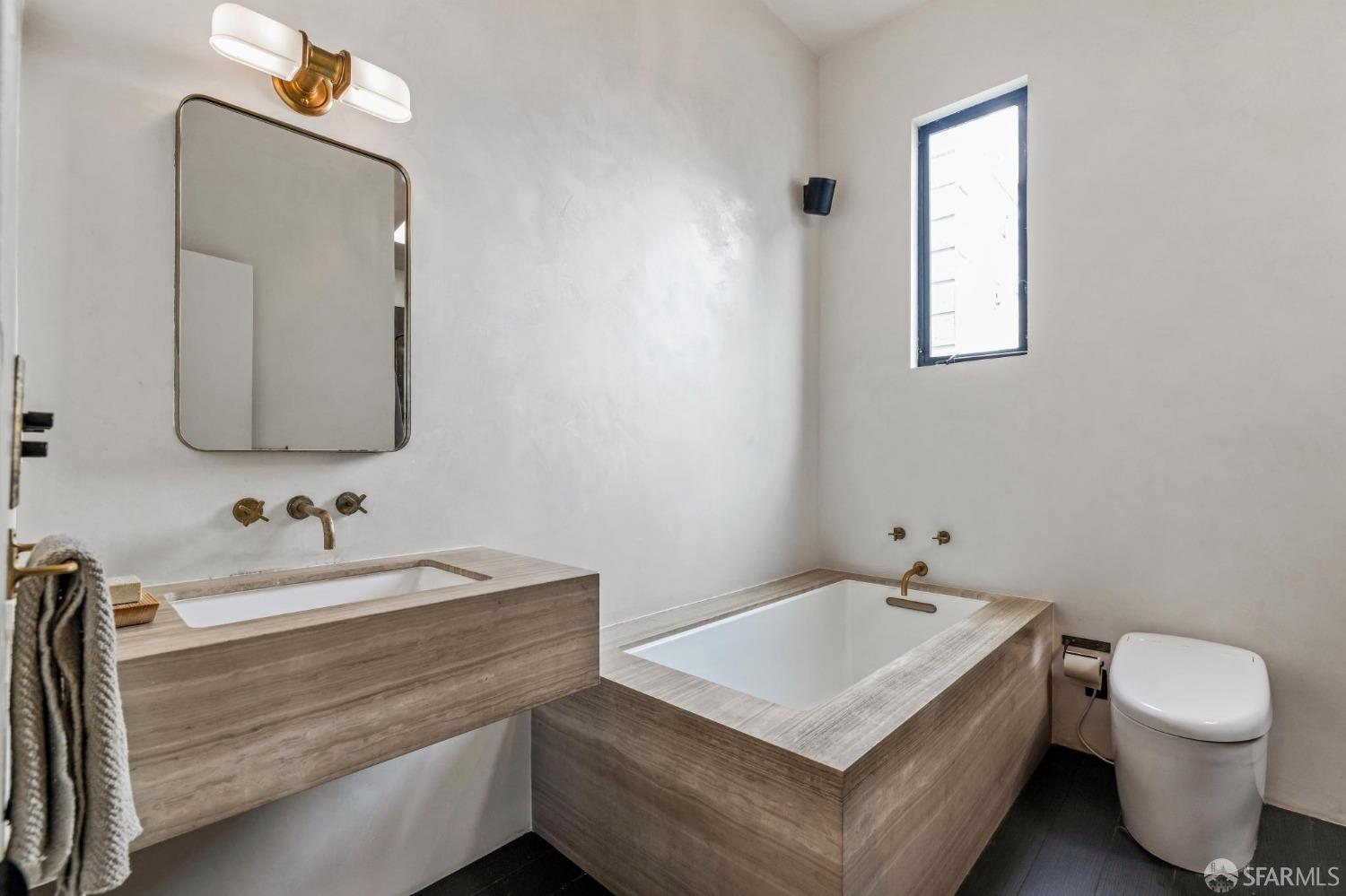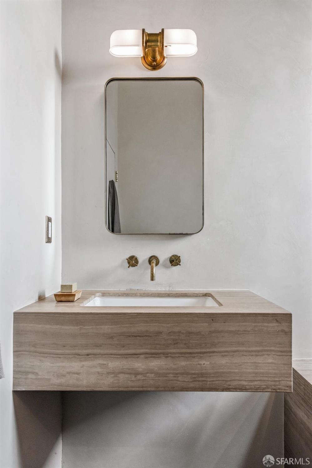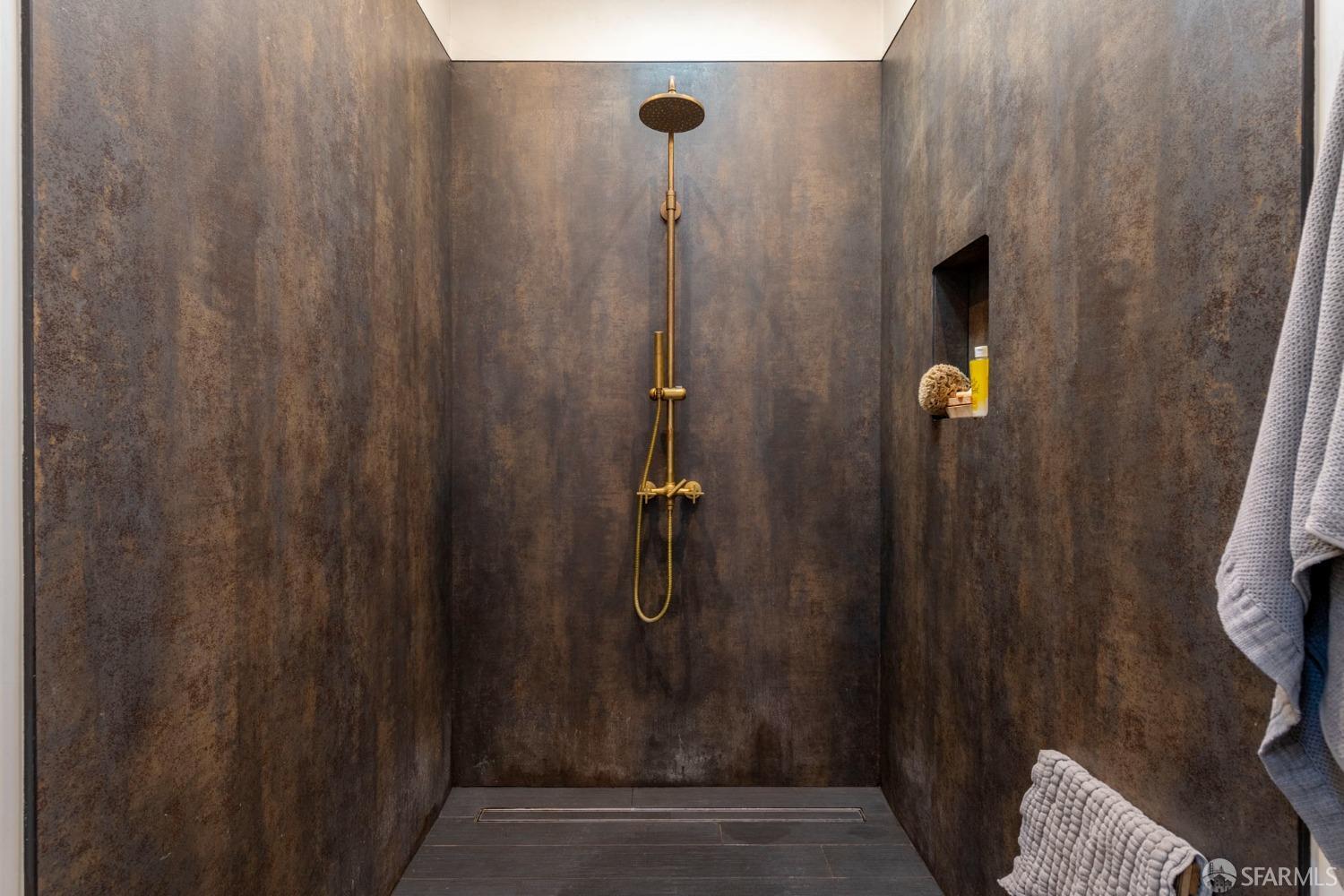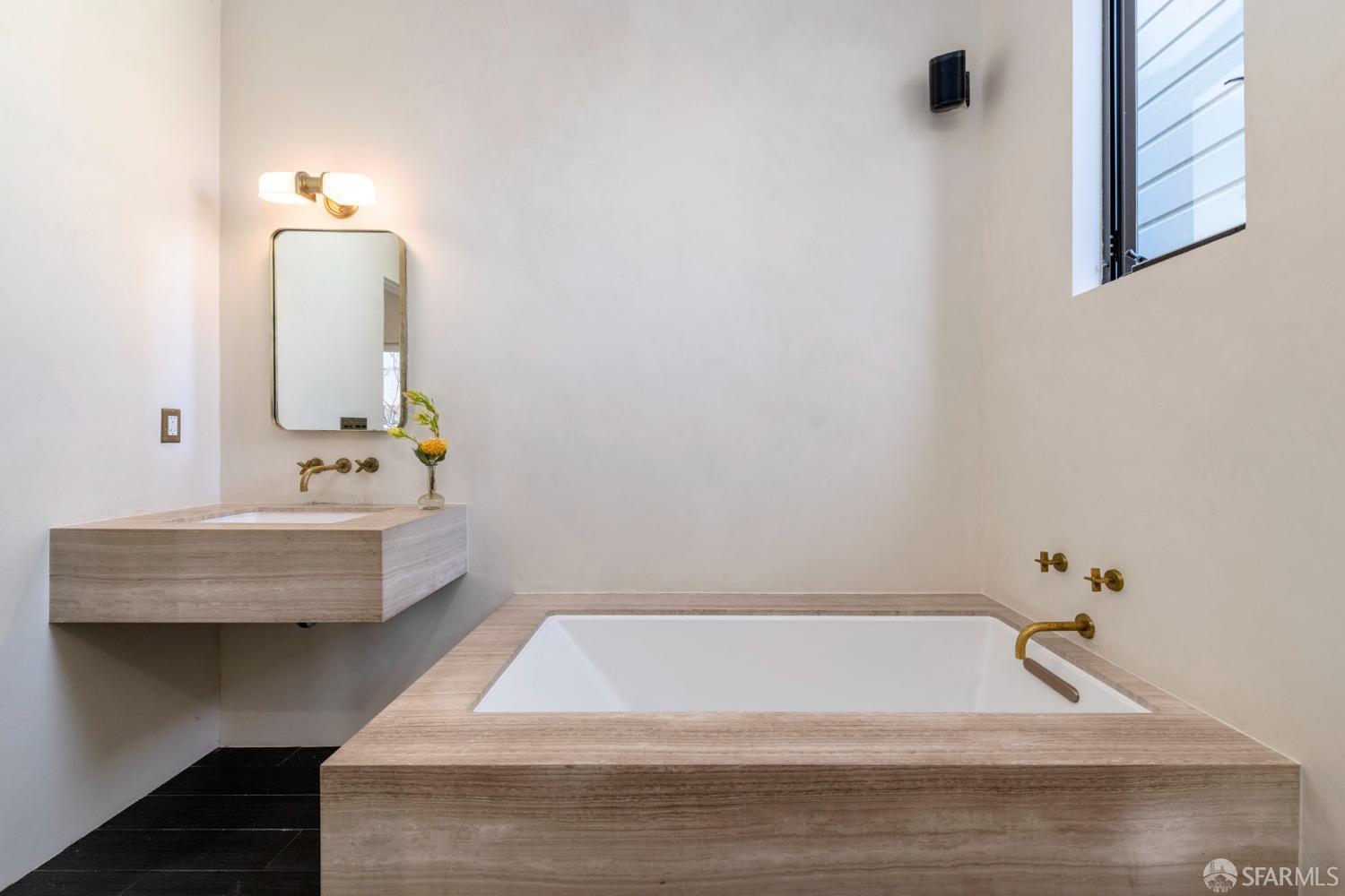 Step into the world of Victorian charm and contemporary luxury at 579 Fell Street. Nestled in the vibrant heart of Hayes Valley, this top floor condo has been meticulously renovated to the tune of over $350,000 by a renowned celebrity designer. This 1,389 sq ft home boasts 3 bedrooms, 1 bath, and 12-ft ceilings, creating a spacious and inviting atmosphere. The living space features custom built-in furniture, herringbone hardwood floors, and vintage Murano chandeliers, while the remodeled gourmet kitchen is a culinary paradise with top-of-the-line appliances, Italian marble countertops, and a custom walnut kitchen nook. Step outside onto the large private deck through high-end folding sliding doors, creating a seamless indoor/outdoor experience. The master bedroom offers a tranquil escape with a large custom closet, while the oversized bathroom exudes luxury with Venetian Plaster walls, a travertine wrapped sink and soaking tub, and a walk-in shower. Additionally, the property includes 1 leased parking space for added convenience. Transparent pricing!