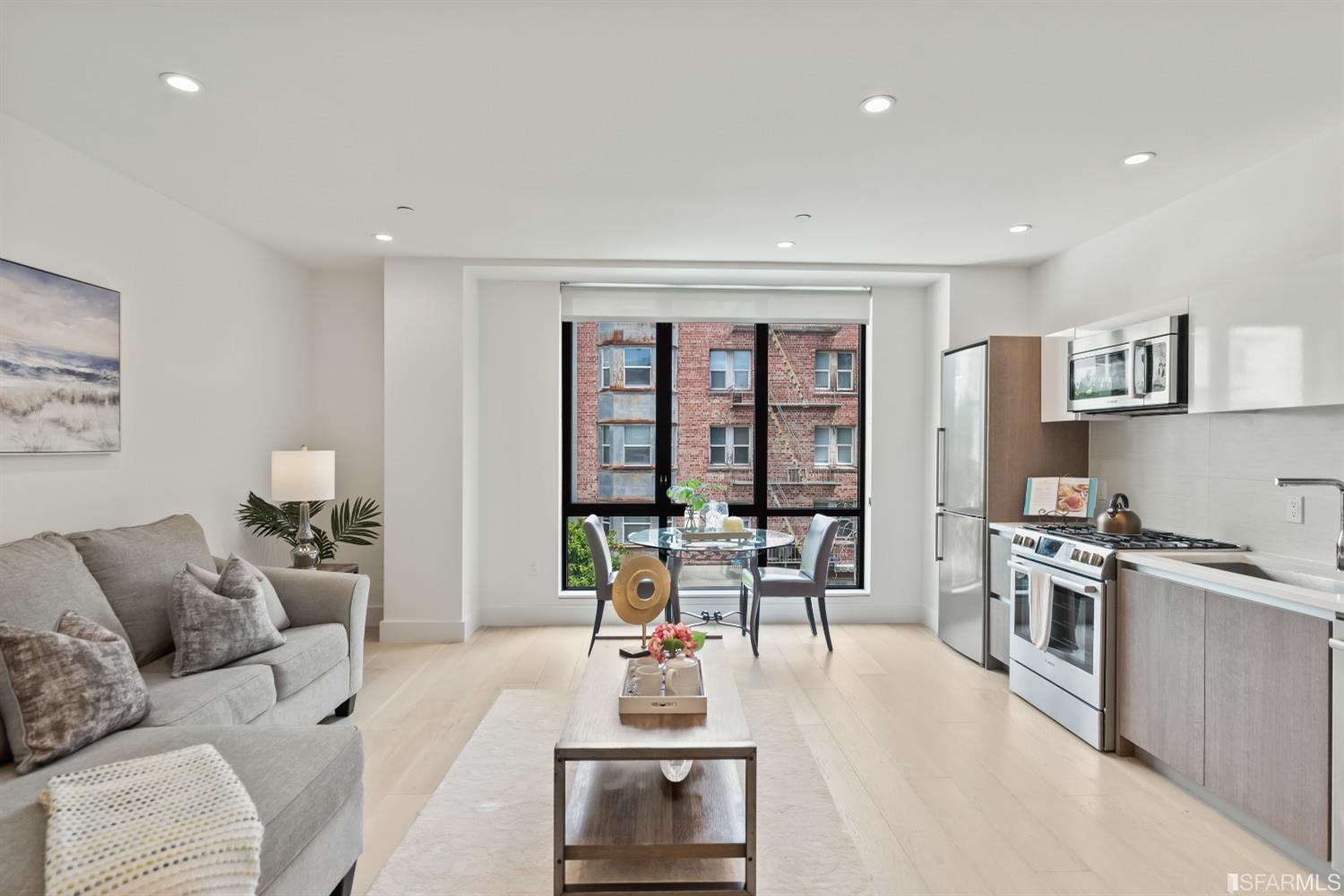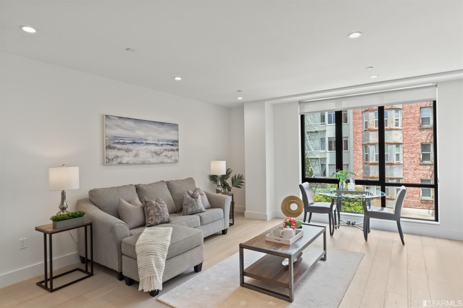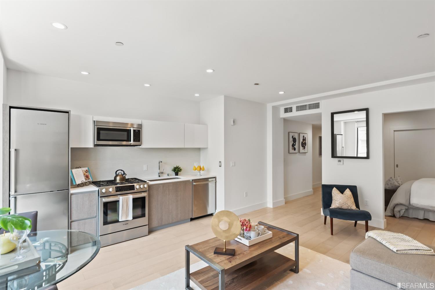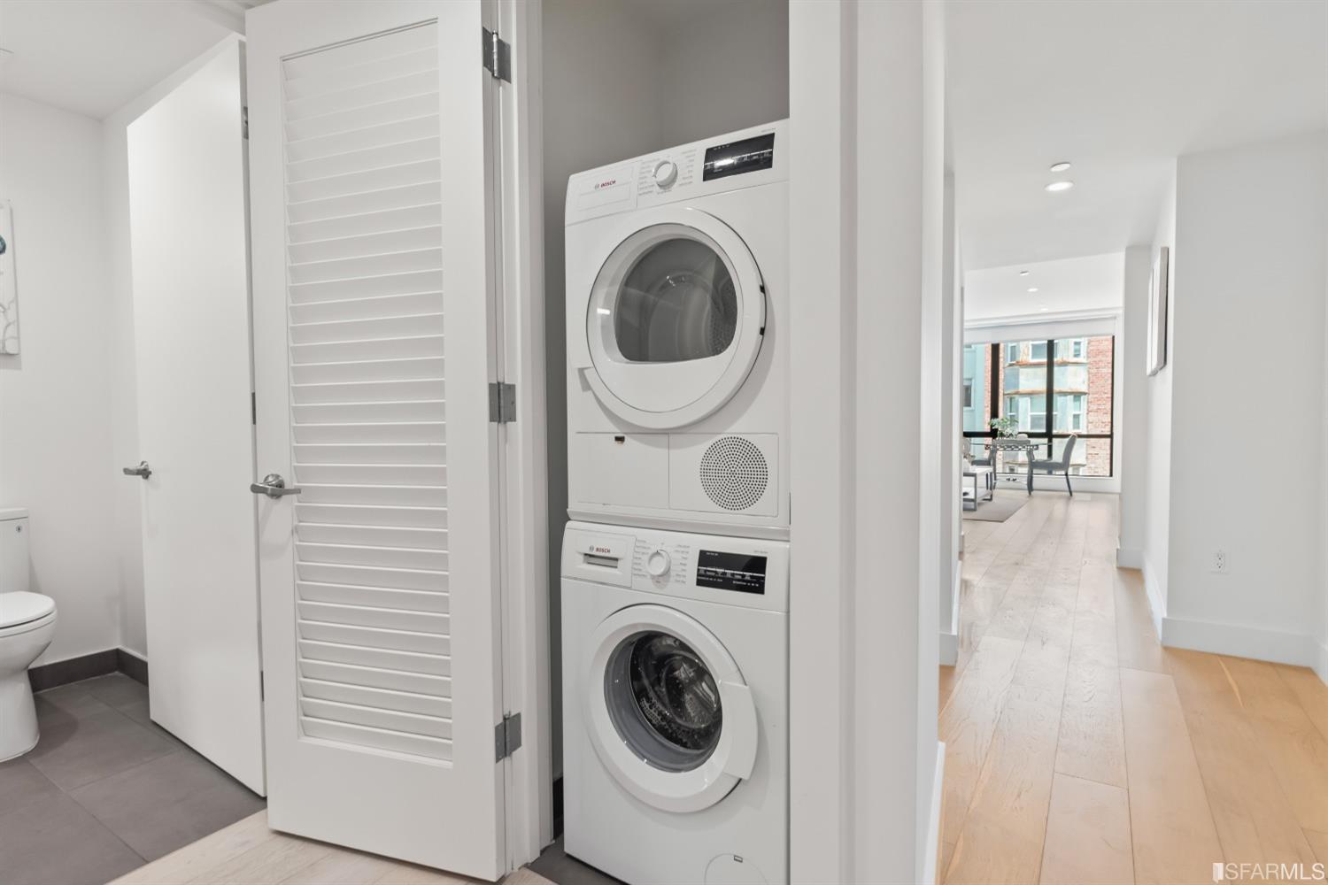 Welcome to 832 Sutter Street, a 20 unit condo tower newly built in 2016. Centrally located in the lower Nob Hill area of San Francisco, The Rubi is a modern, boutique condominium development that is just steps away to world class shopping and dining at Union Square. Located on the 5 th floor, Unit 504 is a quiet, rear-facing 1 bed/1 bath, 706 square foot residence with an office nook. The stylish, open designed floor plan allows for maximum use of space - and is flooded with natural light. Features include a Bosch 5-burner gas range, free standing refrigerator, microwave, along with a Bosch stackable washer and dryer. The well-secured key-fob only access building includes an elevator, bicycle parking, and a rear-facing shared ground level courtyard. The $695/month HOA dues includes Webpass internet, utilities (water and trash) and building insurance. Leased parking is available directly next door for approx. $385/month. Boasting a 99 Walk Score & 100 Transit Score and one of the best locations in San Francisco, The Rubi offers a truly amazing value!