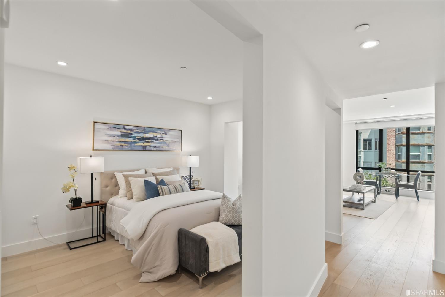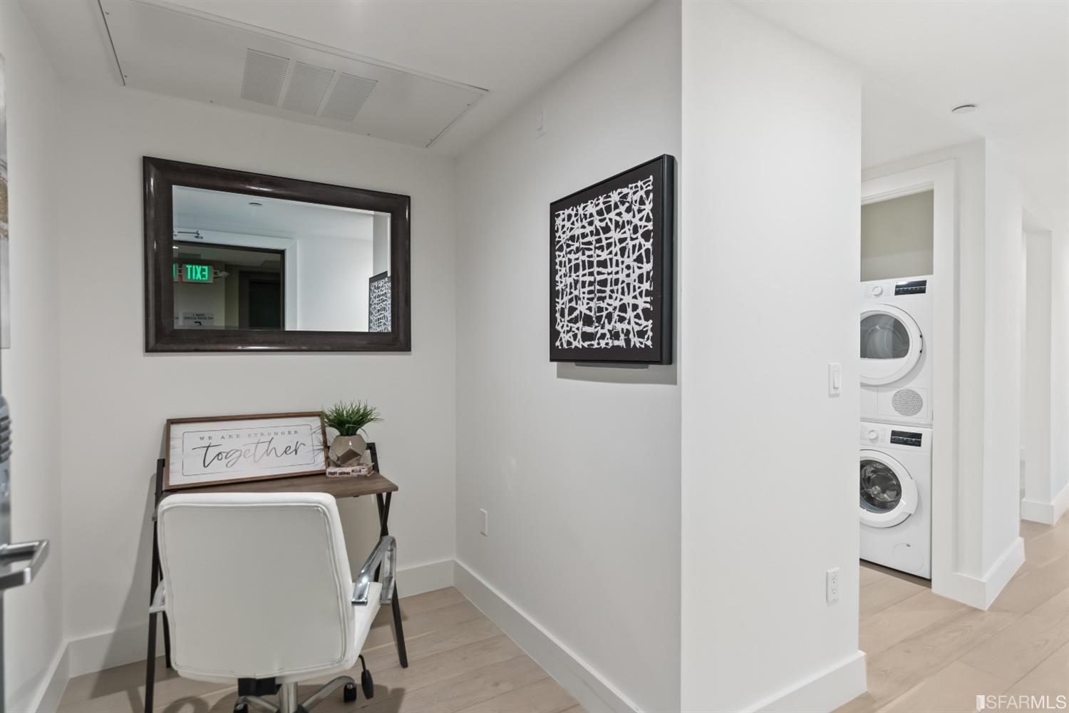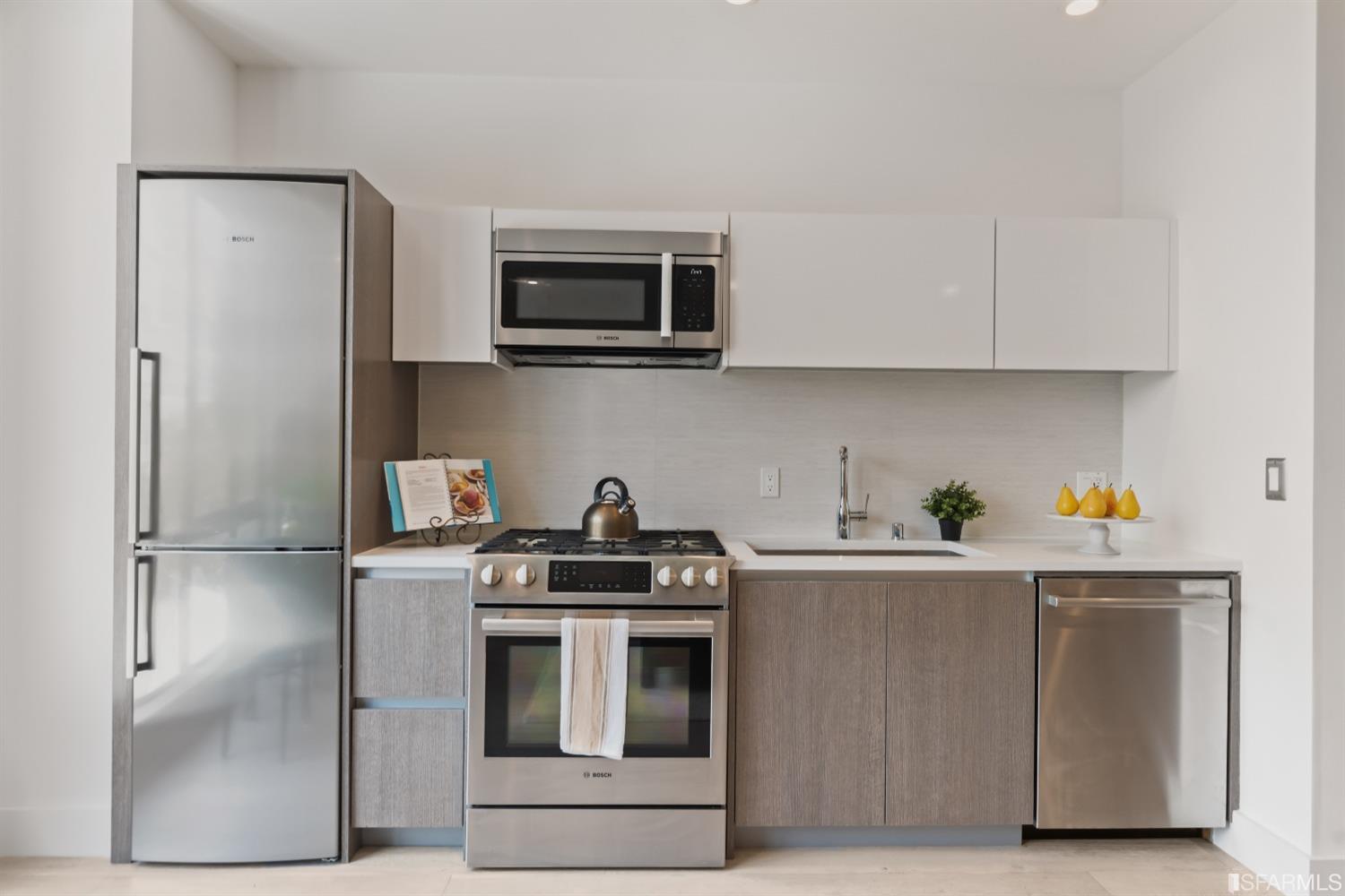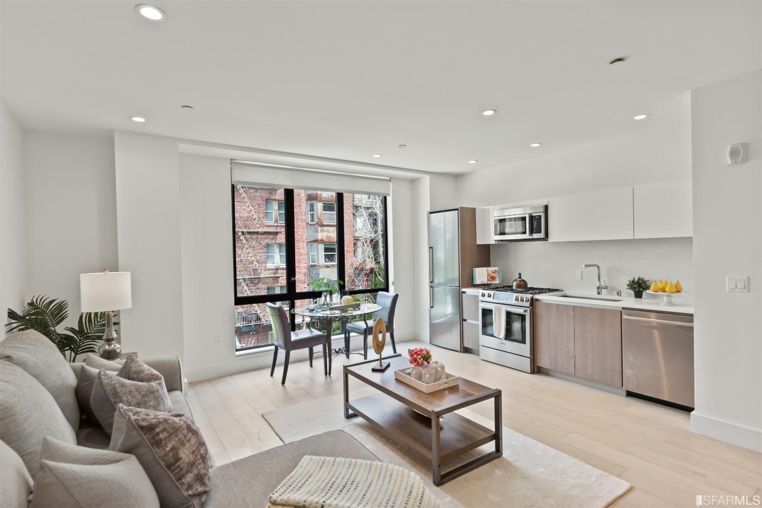 Welcome to 832 Sutter Street, a 20 unit condo tower newly built in 2016. Centrally located in the lower Nob Hill area of San Francisco, The Rubi is a modern, boutique condominium development that is just steps away to world class shopping and dining at Union Square. Located on the 5 th floor, Unit 504 is a quiet, rear-facing 1 bed/1 bath, 706 square foot residence with an office nook. The stylish, open designed floor plan allows for maximum use of space - and is flooded with natural light. Features include a Bosch 5-burner gas range, free standing refrigerator, microwave, along with a Bosch stackable washer and dryer. The well-secured key-fob only access building includes an elevator, bicycle parking, and a rear-facing shared ground level courtyard. The $695/month HOA dues includes Webpass internet, utilities (water and trash) and building insurance. Leased parking is available directly next door for approx. $385/month. Boasting a 99 Walk Score & 100 Transit Score and one of the best locations in San Francisco, The Rubi offers a truly amazing value!